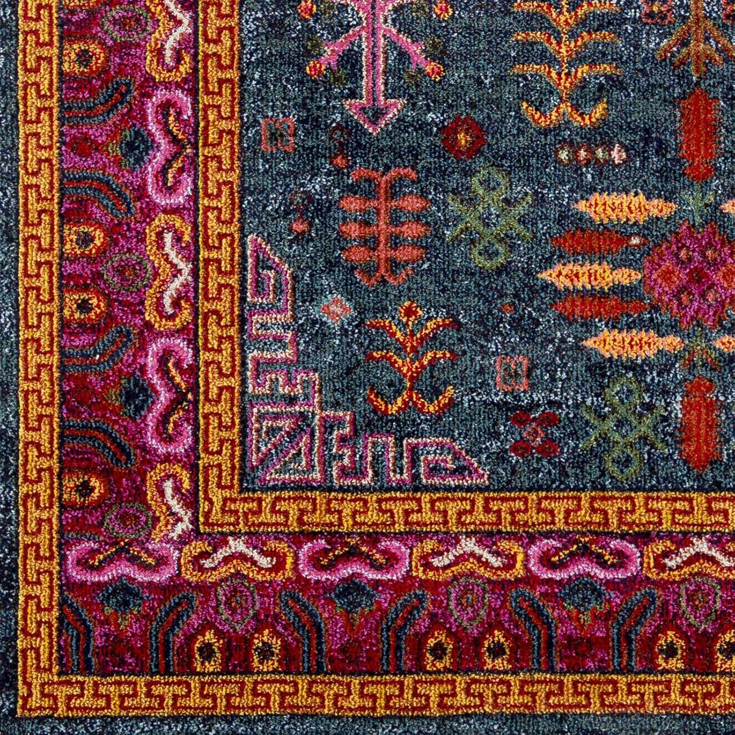 Hauteloom Cleveland Khotan Boho Vintage Living Room Bedroom Area Rug - Traditional Oriental Bohemian Abstract Style - Pink, Green, Purple, Red, Colorful - 5'3" x 7'3"
