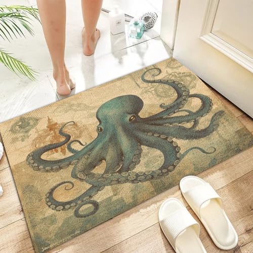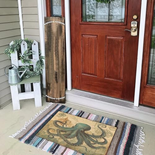 Coir Fiber Welcome Mats for Front Door 16x24in Ocean Beach Nautical Theme Octopus Decorative Floor Doormat Blue Texture Seascape Coastal Entry Door Rugs Traffic Guard Home Décor for Front Door Outside
