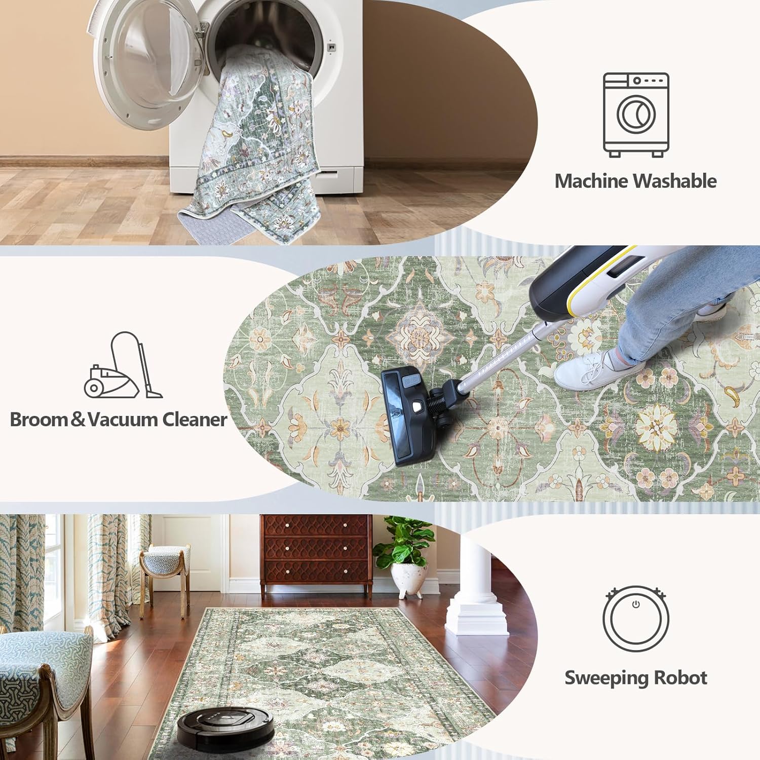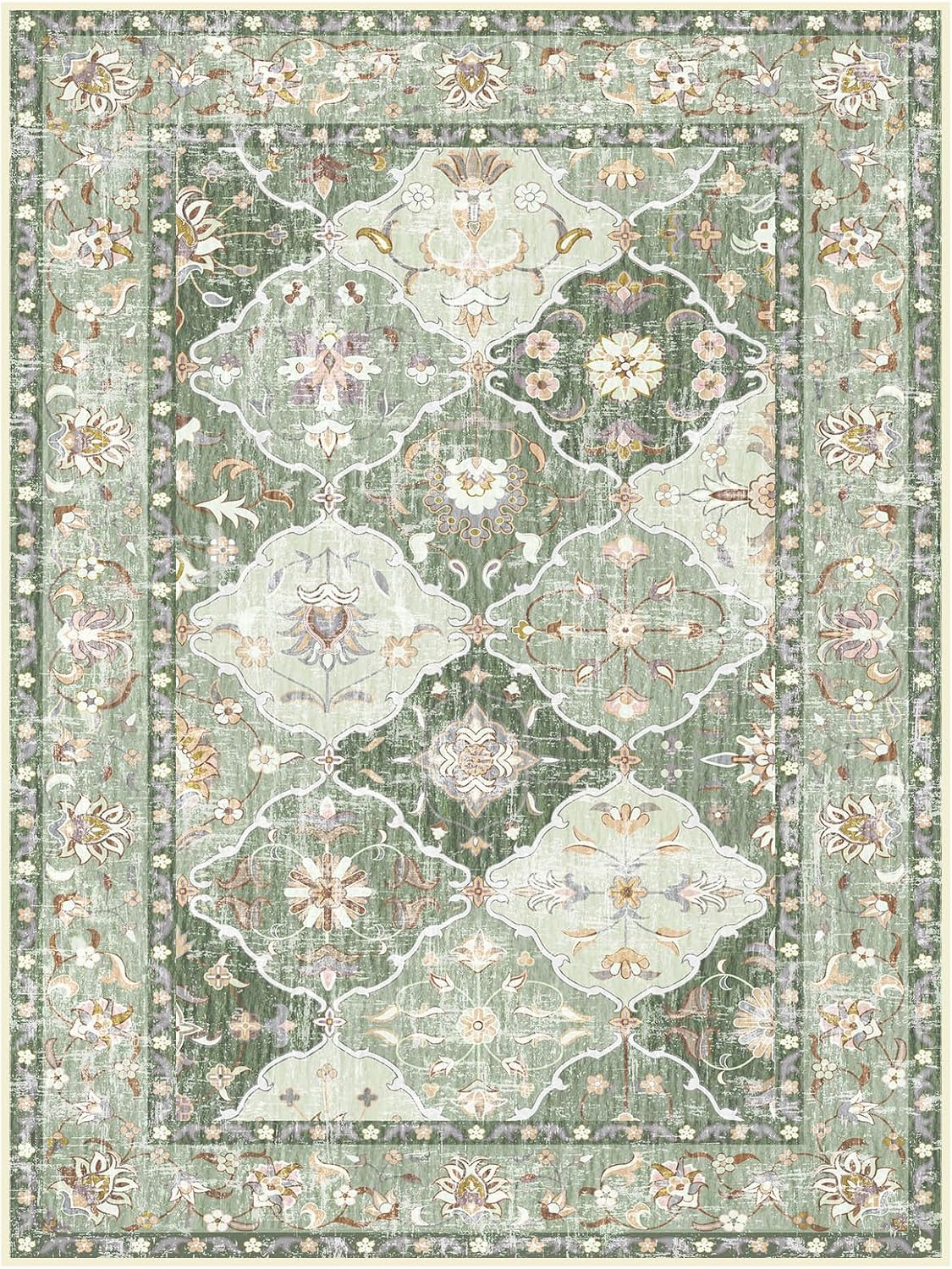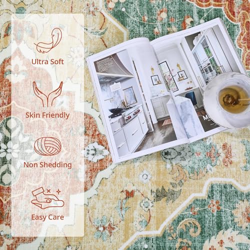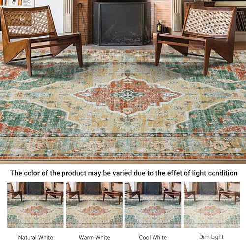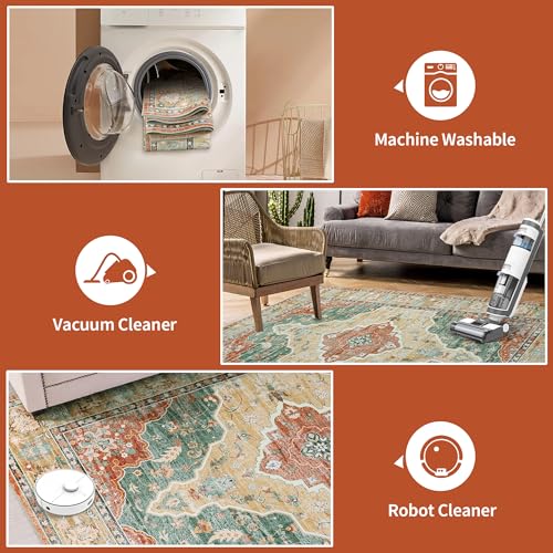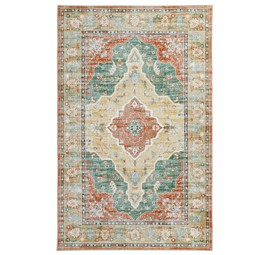 Boho Vintage Area Rugs 5×7 Washable Non-Slip Traditional Green Carpet for Living Room Bedroom Dining Room Farmhouse