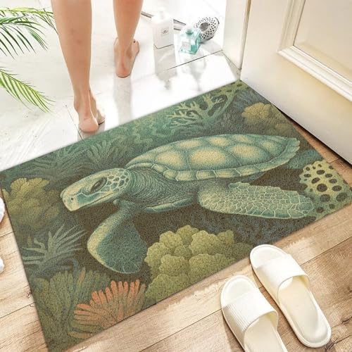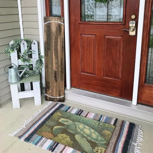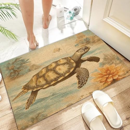 Nautical Beach Ocean Theme Turtle Front Door Mat Coir Fiber Front Doormat Coastal Seascape Painting Indoor and Outdoor Mats Closing Realtors Gift Durable Home Backyard Stylish Farmhouse Décor 16x24in