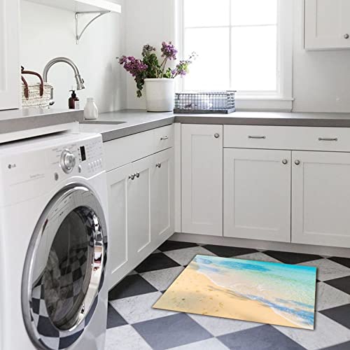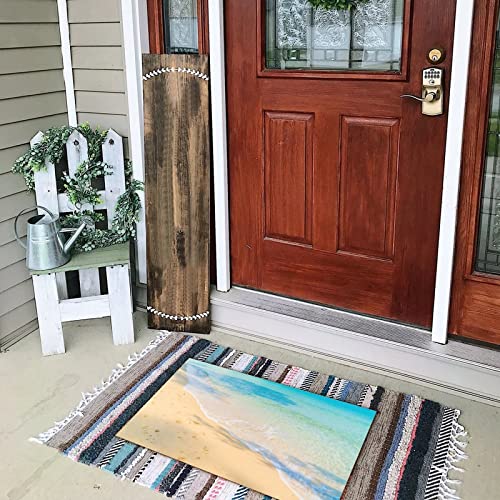 Vintage Coir Fiber Entry Mat with Non-Slip Backing Beach Scene Ocean Theme Sea Doormat Nature Coastal Pictures Seascape First Home Couple's Gift for Kitchen Garage Home Decor 16x24 Inch