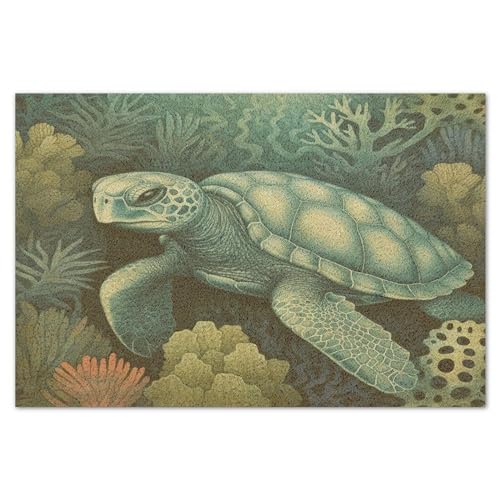 Nautical Beach Ocean Theme Underwater Turtle Indoor Doormat Coir Fiber Outdoor Door Mats for Outside Entry Under The Sea Blue Coastal Doormat Couple Gifts Farmhouse Entry Garage Home Décor 16x24in