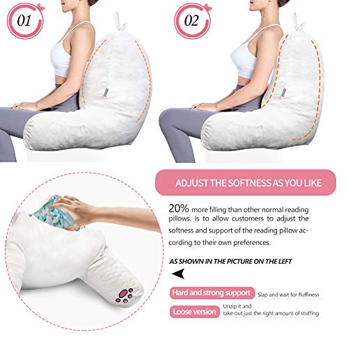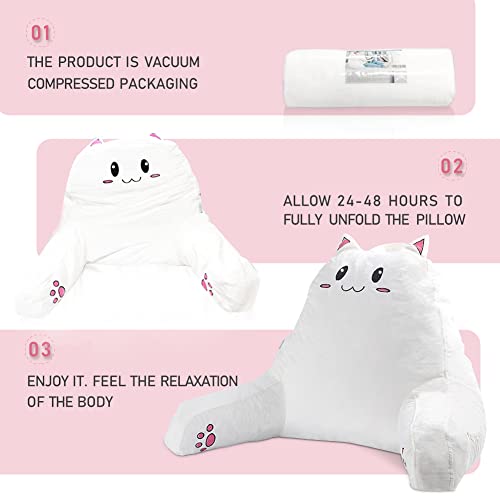 SUNSIDE Reading Pillow with Cat Design, Cute Back Pillows for Adult and Children, Shredded Memory Foam Pillow with Arms, Suitable for Sitting in Bed, Relaxing, Watching TV, Gaming