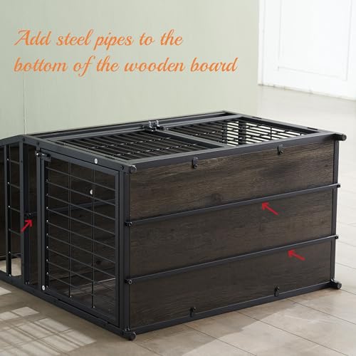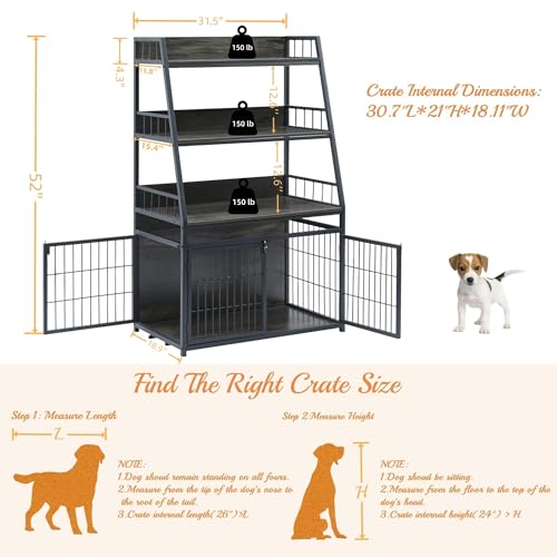 Furniture Style Dog Crate for Small/Medium Dog, Heavy Duty Anti-Chew Dog Kennel Furniture with 3 Doors, Wooden Decorative Indoor Basic Dog Cage with 3-Layer Storage Shelves