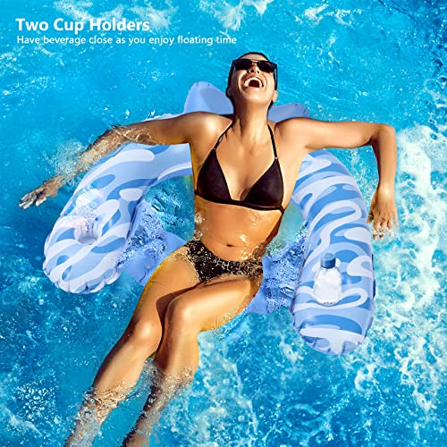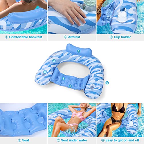Inflatable Pool Float Chair - Floating Pool Chair Lounge Floats for Swimming Pool Water Chair Pool Lounger with Cup Holder Pool Toy Party Floaties for Adults, Extra Large