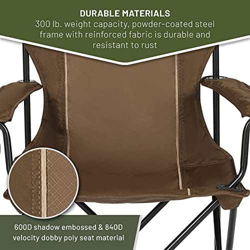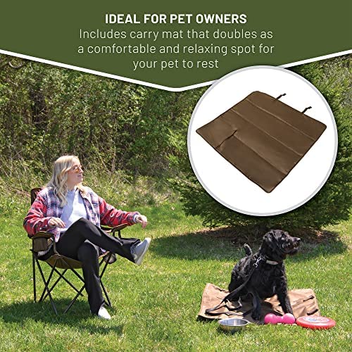 TIMBER RIDGE Collapsible Armrests Cup Holder & Carry Mat & Pet Leash Heavy Duty Foldable Chair for Outdoor Lounge Lawn Beach, Support 300 lbs, Earth Brown