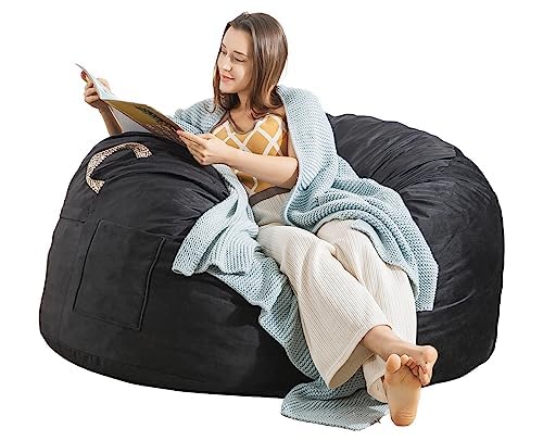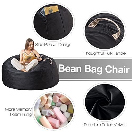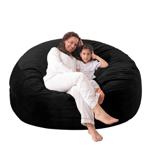 [Removable Outer Cover] Large Bean Bag Chair: 4 ft Memory Foam Bean Bag Chairs for Adults/Kids,Bean Bag Chair with Filler Included,Soft Faux Fur Fabric,Machine Wash,Ink Black,4 Foot