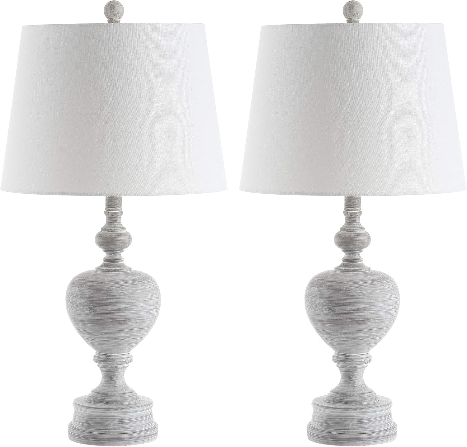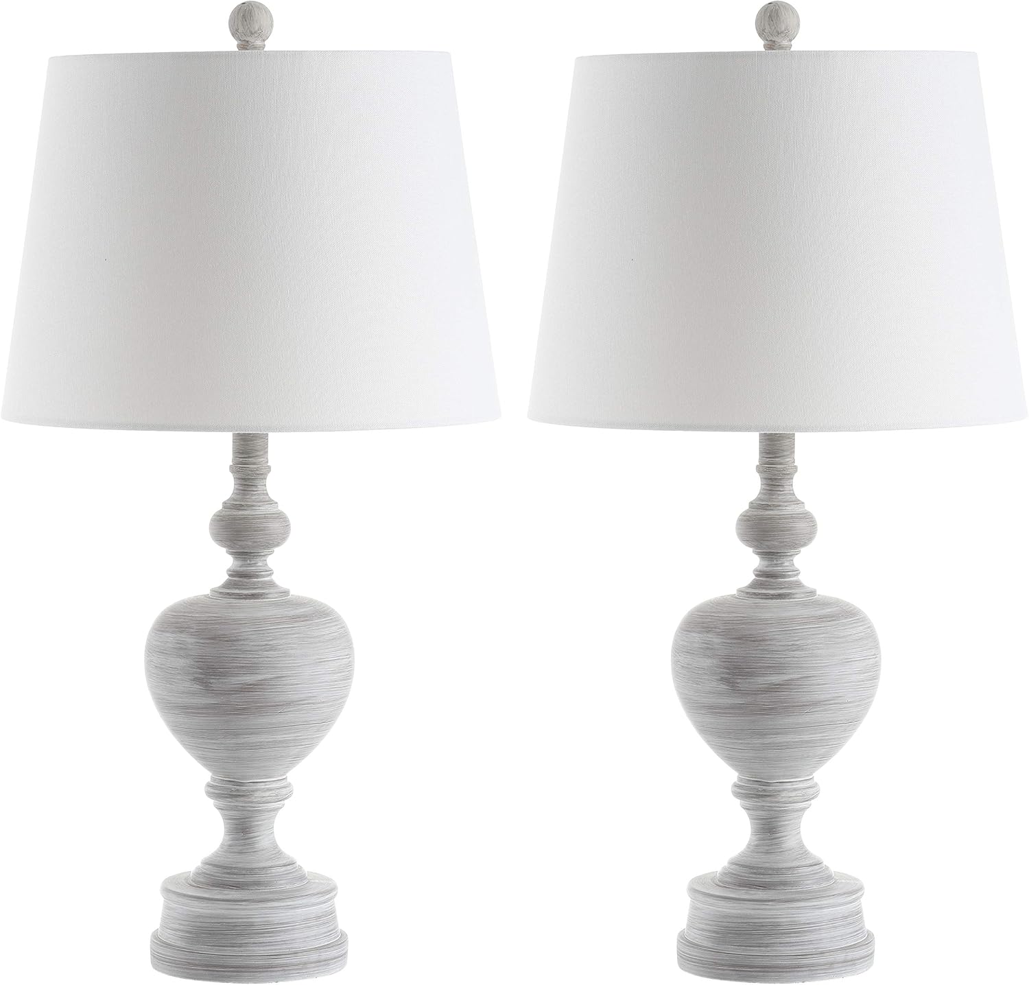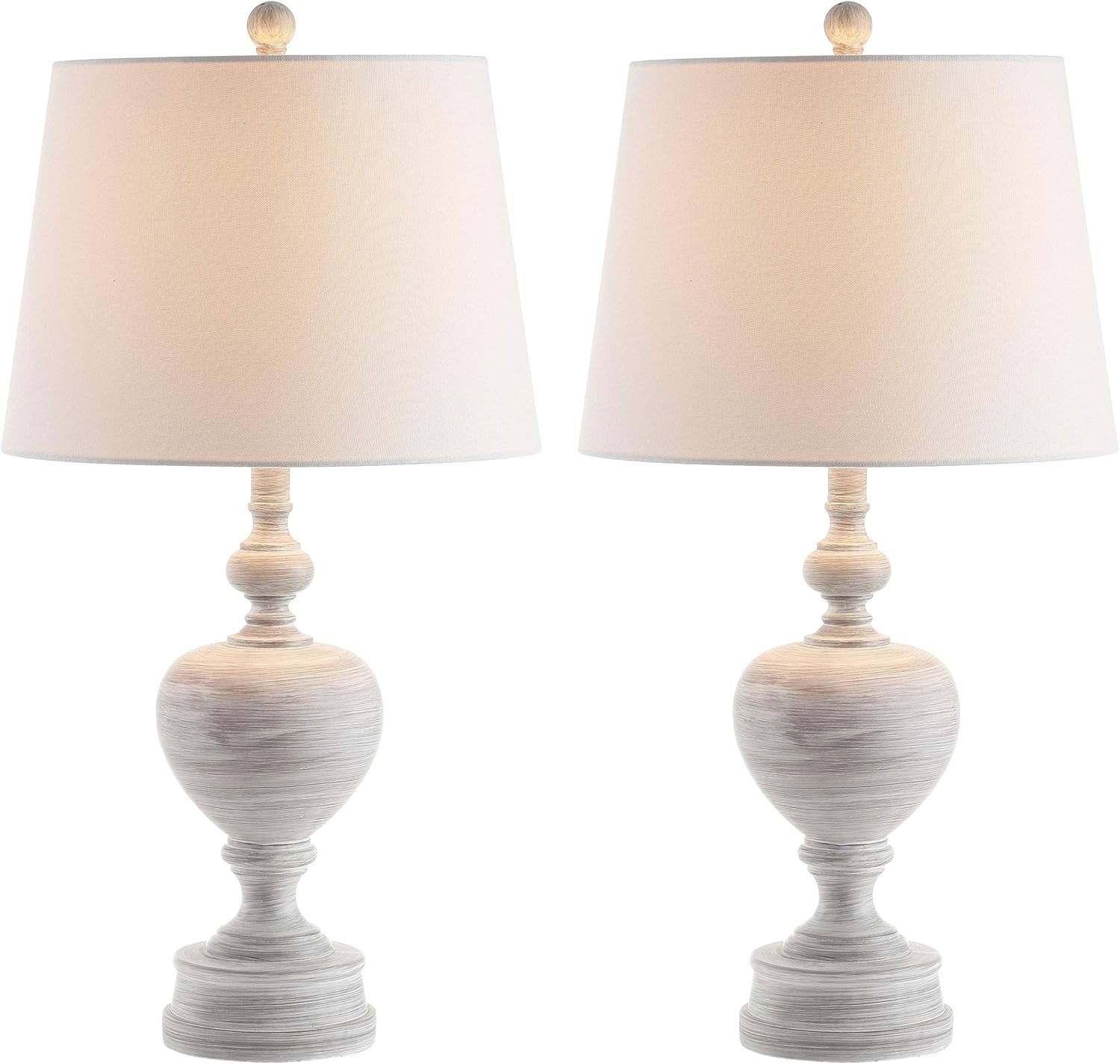 SAFAVIEH Lighting Collection Alban Rustic Farmhouse Wash White 27-inch Bedroom Living Room Home Office Desk Nightstand Table Lamp Set of 2 (LED Bulbs Included)