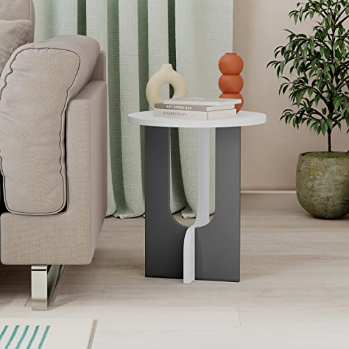 JV Home Luna Round Side Table Narrow Modern End Table with Storage Narrow Decorative Coffee Table De Nuit | Small Nightstand for Living Room Bedroom 15.8 Inch (Oak - White)
