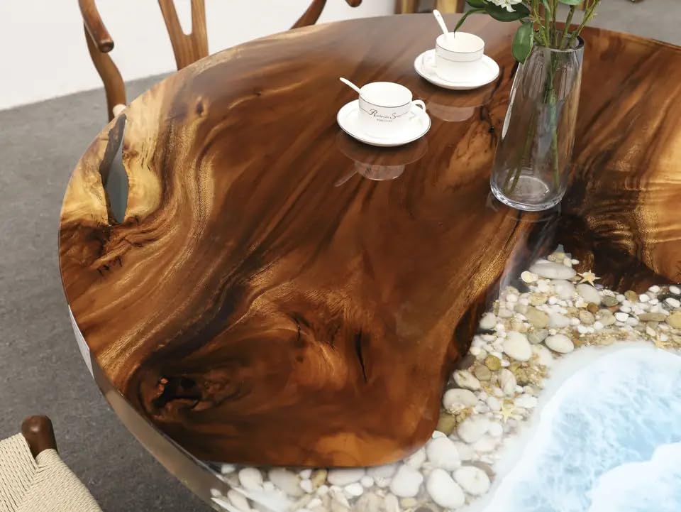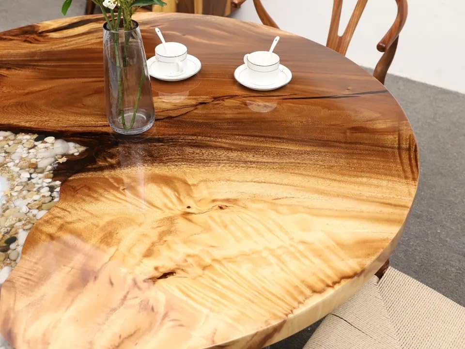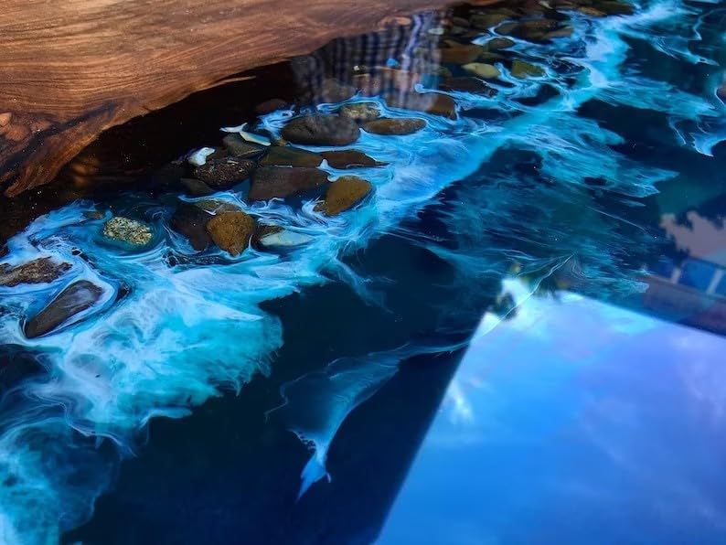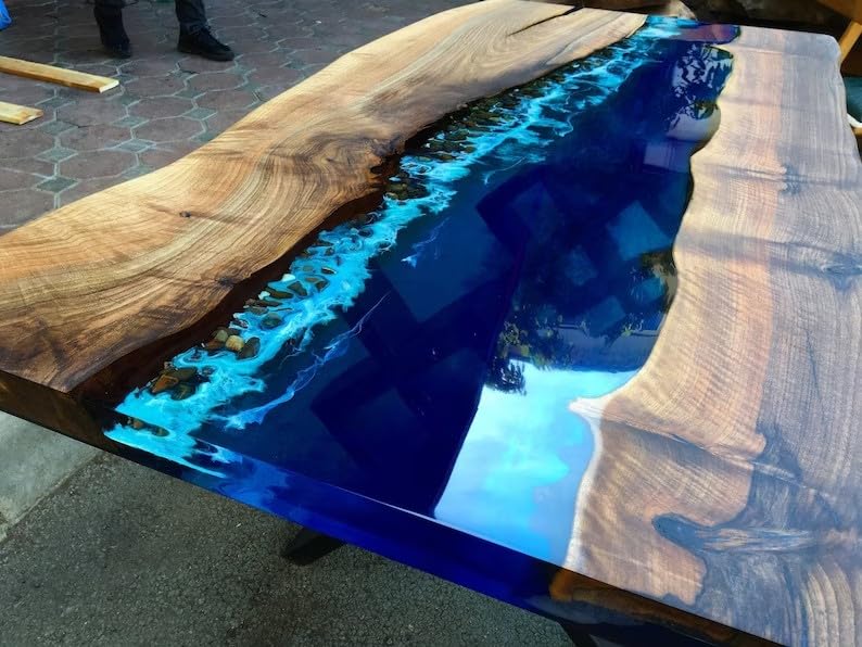 Large Natural Wood Deep Blue River Sea Coastal Table Top Dining Table Living Room Stones Table For 2, 4, 6, 8 Coffee Table Side/End Table Patio Table Walnut Table (Without Stand, 60 x 36 Inches)