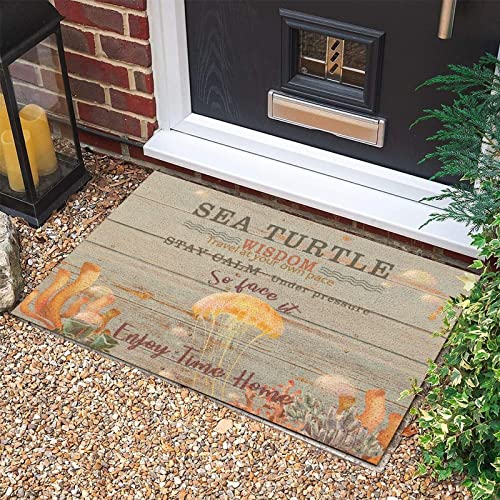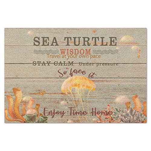 Nautical Beach Ocean Theme Underwater Jellyfish Front Doormat Coir Fiber Welcome Doormat Beach Coastal Tropical Theme Front Door Mat Closing Gift Easy to Clean Patio Office Home Decor 24x36in