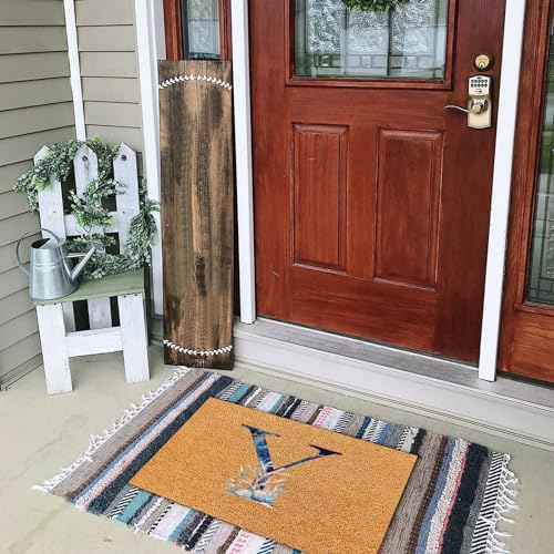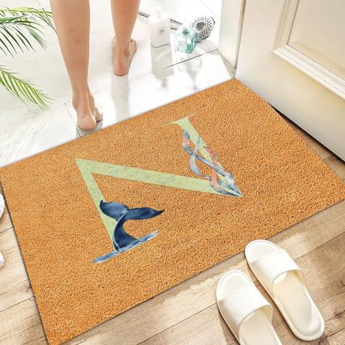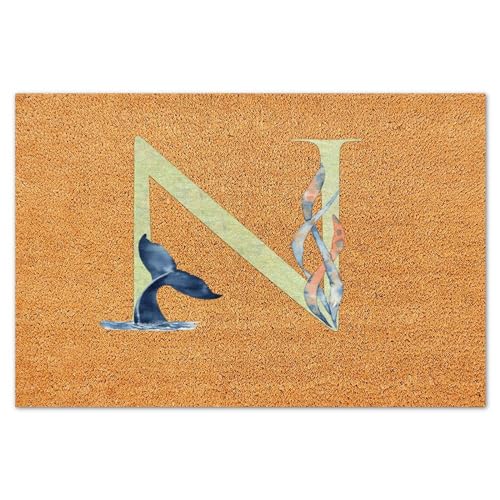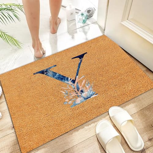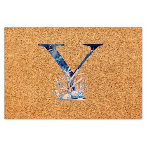 Blue Initial Number Letter A Coral Reefs Welcome Doormat Easy Clean Coastal Script Family Name Coir Fiber Doormat Personalized Entry Door Rugs for Entrance Backyard Home Décor 24x36 Inch