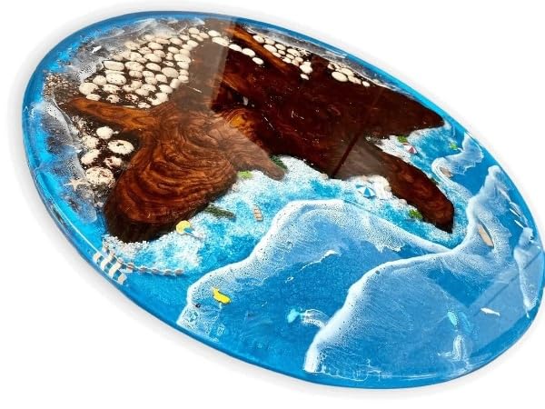 TUZECH Customized Round Epoxy Table Ocean Waves with Stone Look Epoxy Table Coastal Table Dining Table Coffee Table Side/End Table Living Room Table Home Décor (without Stand, 18 x 18 Inches)