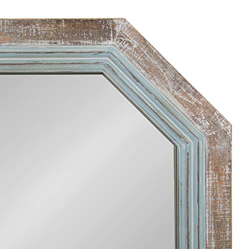 Kate and Laurel Palmer Large Rustic Octagon Wall Mirror, 36" x 28", Coastal Blue and Rustic Brown, Distressed Two-Tone Farmhouse Wall Accent