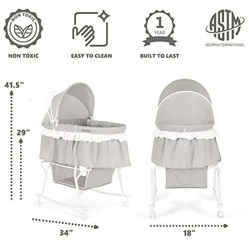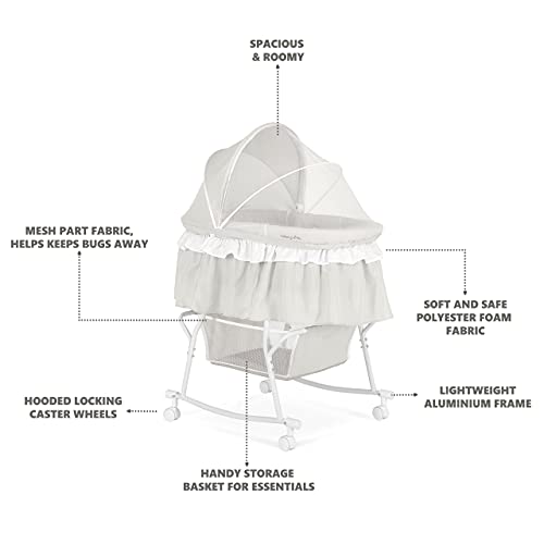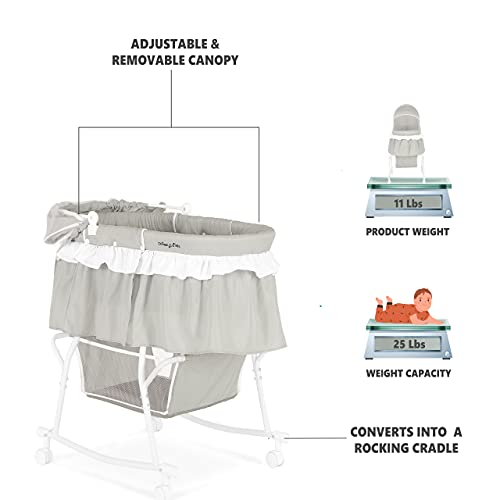 Lacy Portable 2-in-1 Bassinet & Cradle in Cream, Lightweight Baby Bassinet with Storage Basket, Adjustable and Removable Canopy