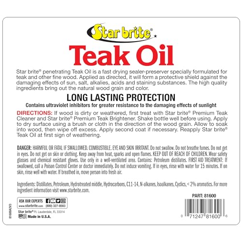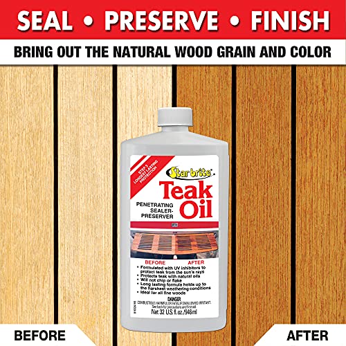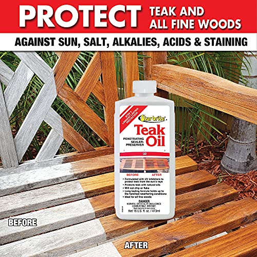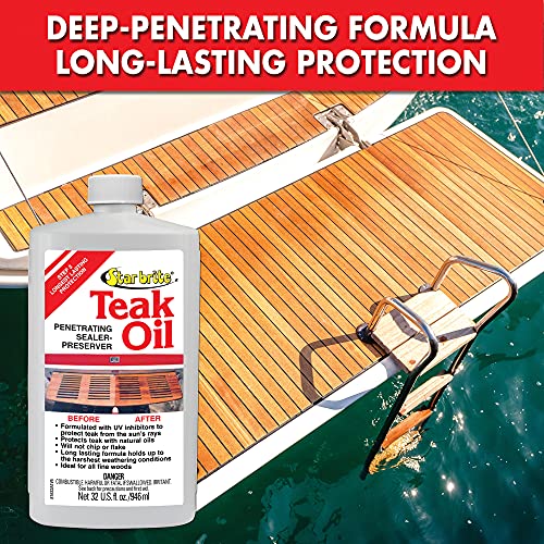 STAR BRITE Marine Grade Teak Oil - Long-Lasting, UV-Resistant Wood Sealer & Preserver With UV Protection for Boats, Outdoor Furniture & All Fine Wood