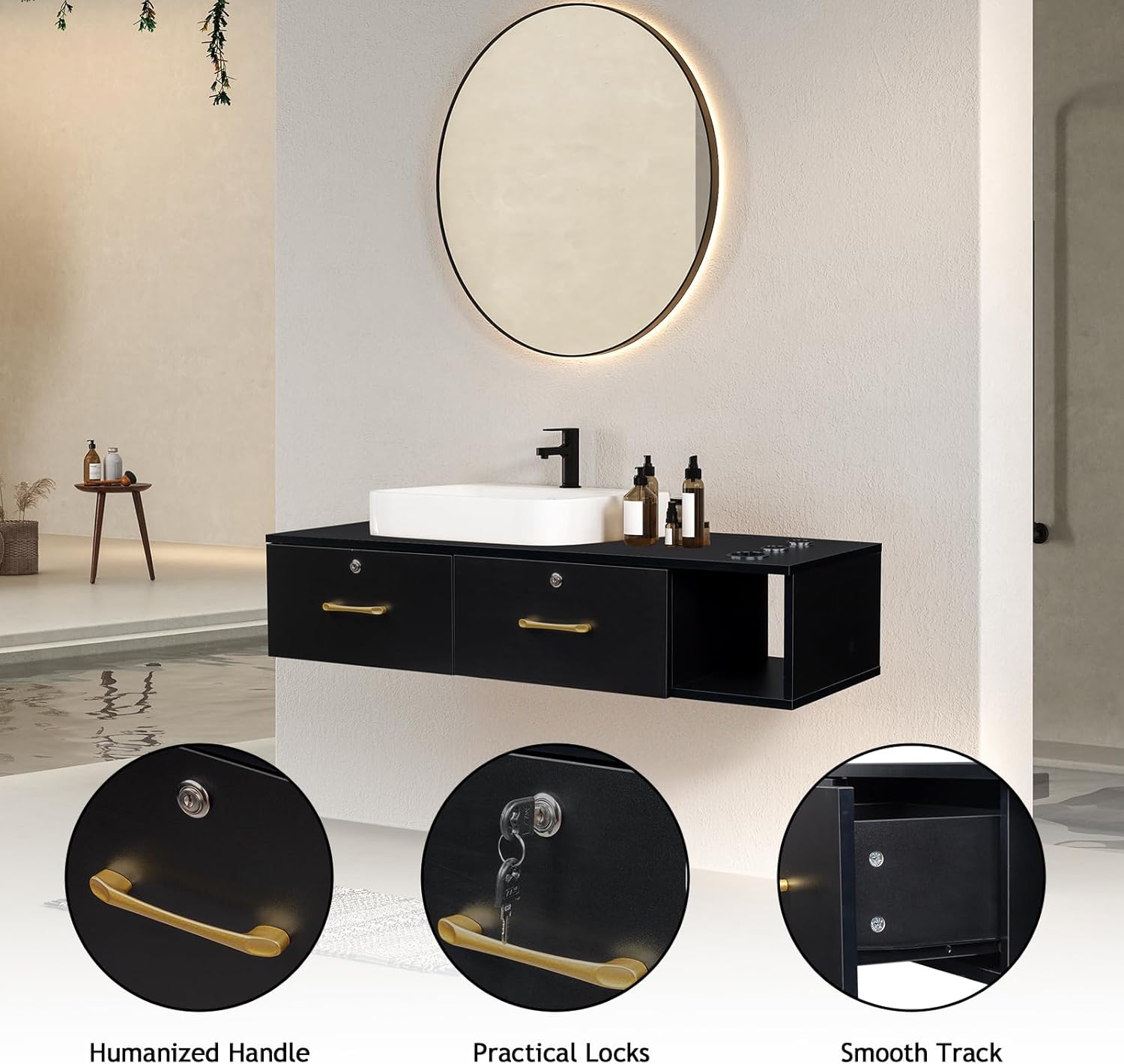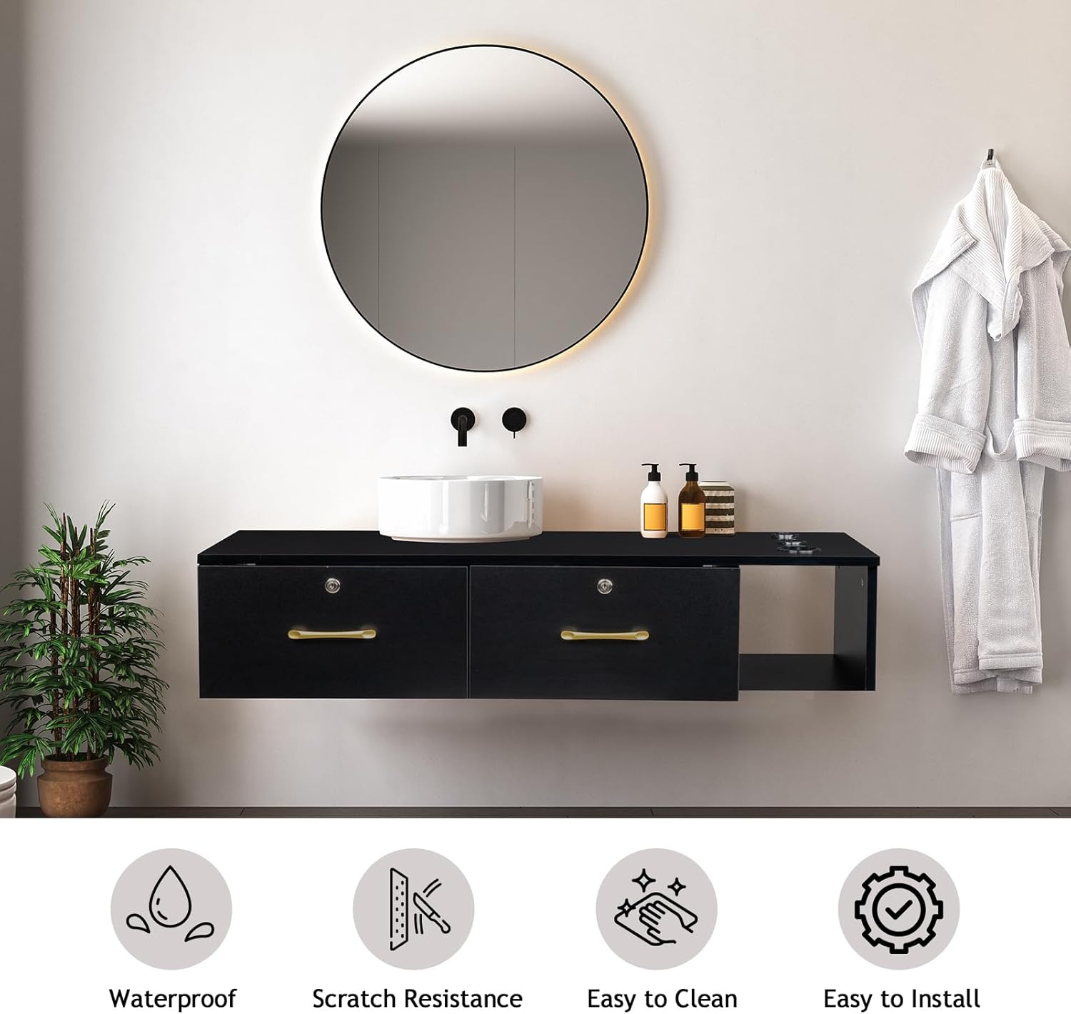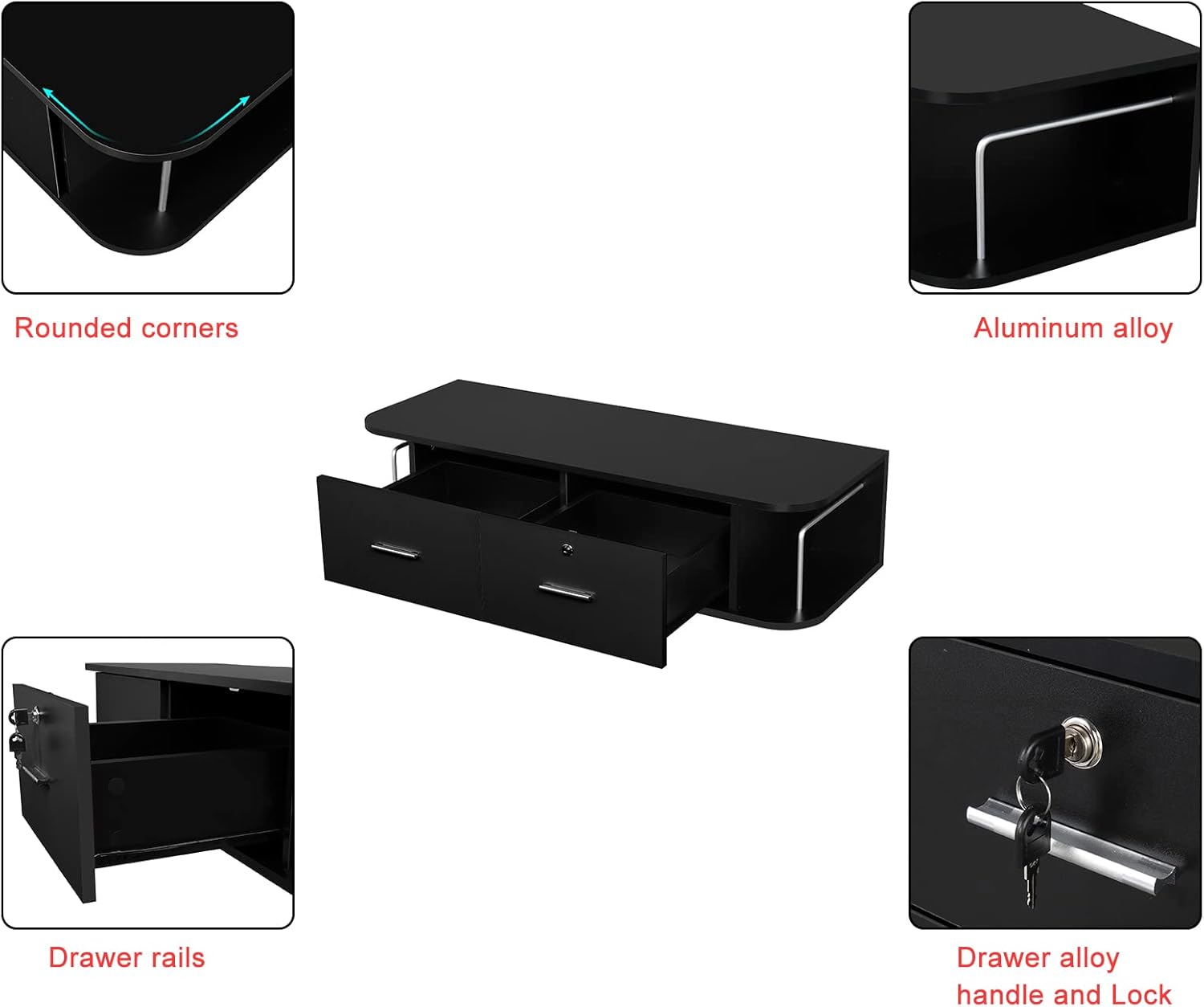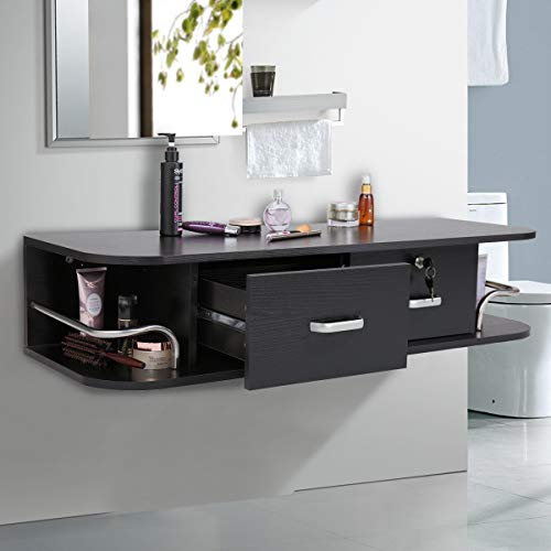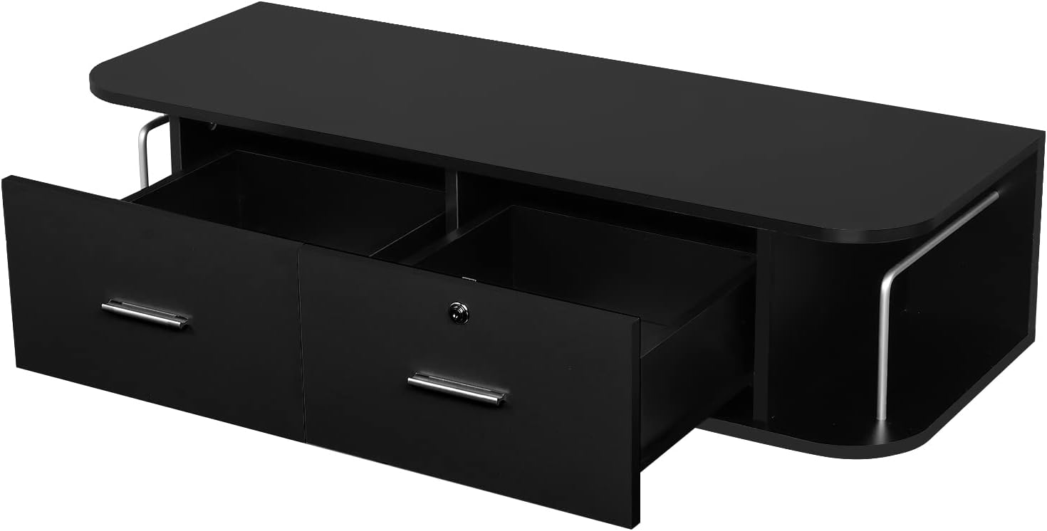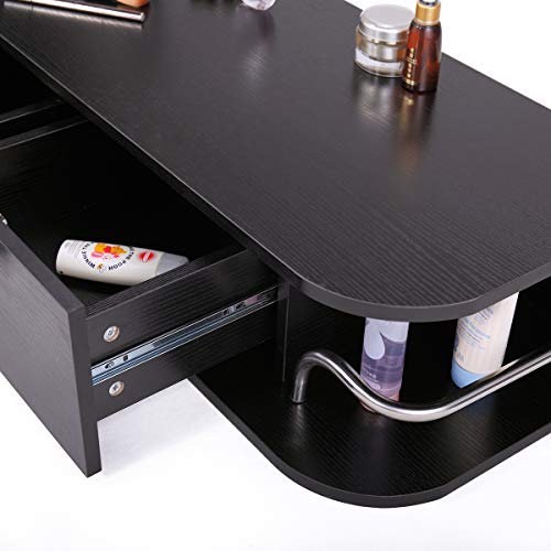 Black Wall Mount Station with Drawers Storage Beauty Salon Spa Equipment, Salon Cabinet Storage for Barbershop Beauty Spa Salon, Barber Table Salon Station Wood Beauty Salon Spa Storage Cabinet Table