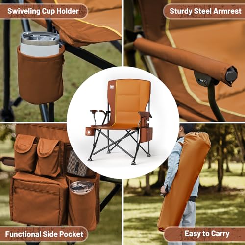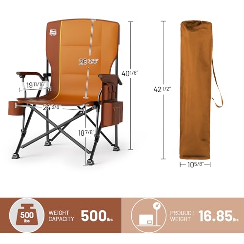 TIMBER RIDGE Oversized Folding Camping Chair High Back Heavy Duty for Adults Support up to 500lbs with Cup Holder, Side Pocket Cooler Bag