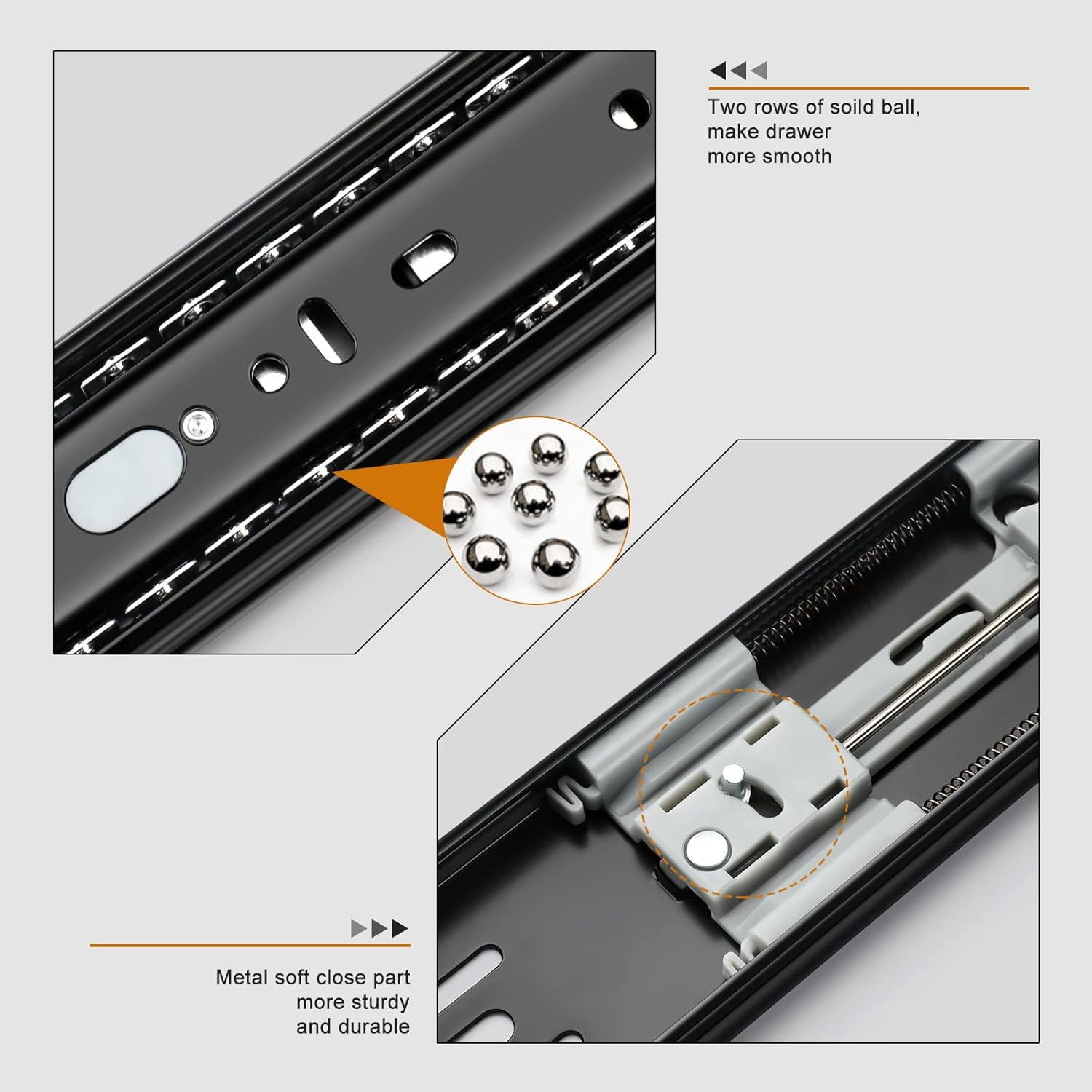 LONTAN Soft Close Drawer Slides 24 Inch Drawer Slides Black 10 Pairs - Heavy Duty Drawer Slides Ball Bearing Drawer Slides 3 Section Full Extension Slides for Drawer, 100LB Capacity
