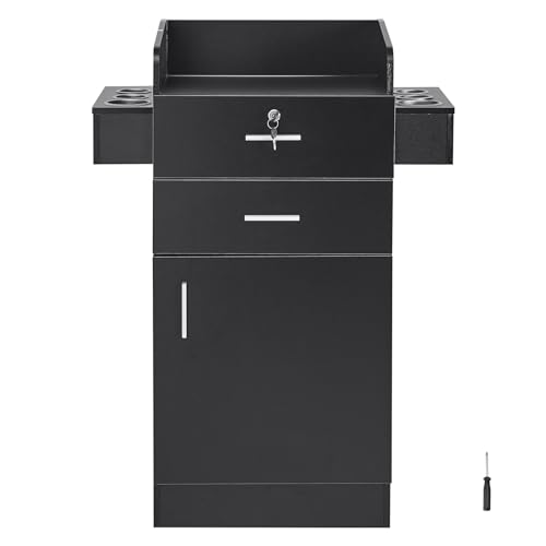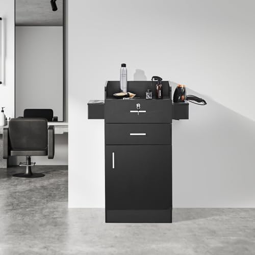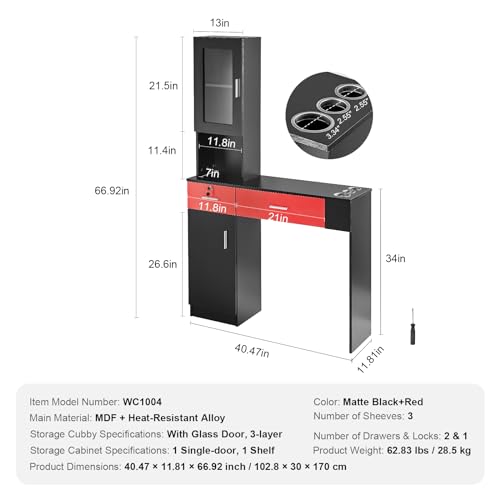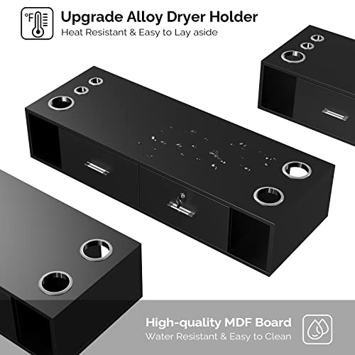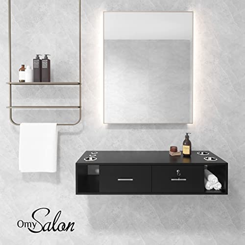 Wall Mount Styling Station,Locking 2 Drawers Storage Beauty Salon Equipment,Styling Barber Station for Hair Stylist,3 Hair Dryer Holes Locking Salon Cabinet for Salon,Home & Bathroom (black)