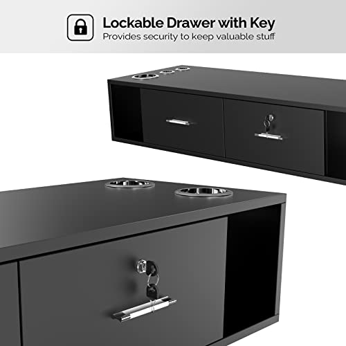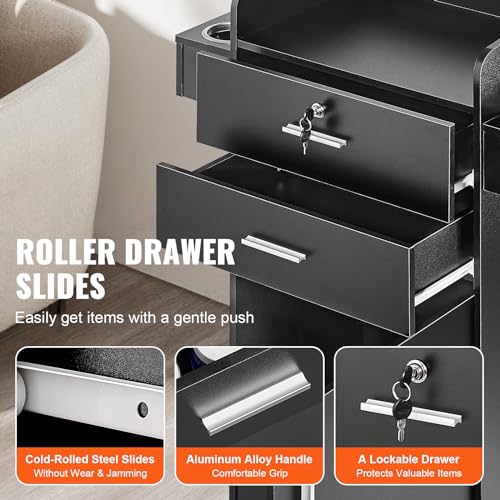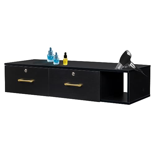 VEVOR Black Wall Mount Styling Station Classic Locking 2 Drawers Storage Beauty Salon Equipment 5 Hair Dryer Holes Locking Cabinet for Beauty Salon or SPA, Barber Shop, Home & Bathroom