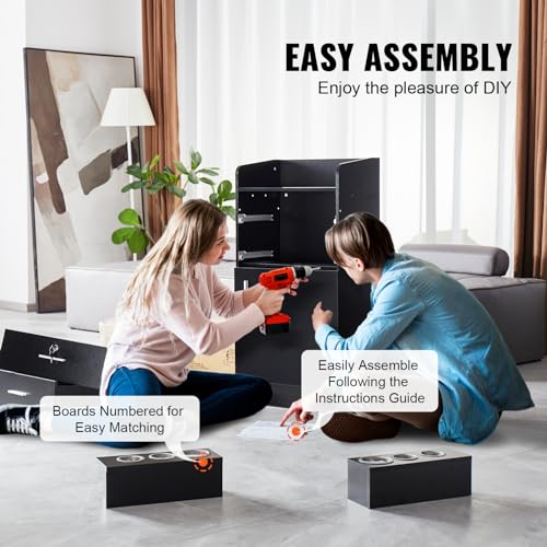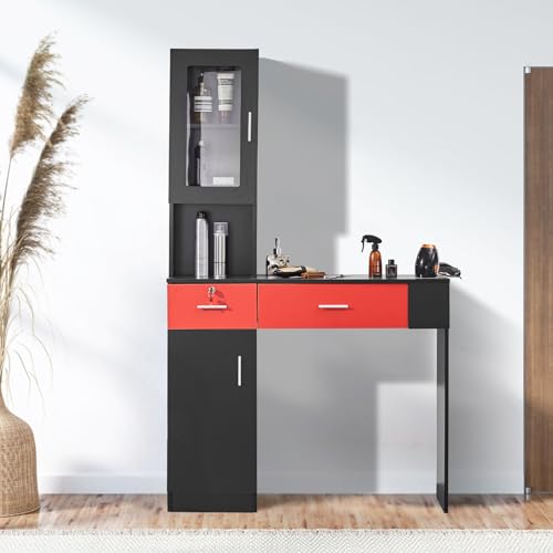 VEVOR Salon Station, Wall Mount Barber Salon Station for Hair Stylist, Beauty Spa Furniture Set, 1 Storage Cabinet, 3 Cubbies and 2 Drawers(One Lockable), Black