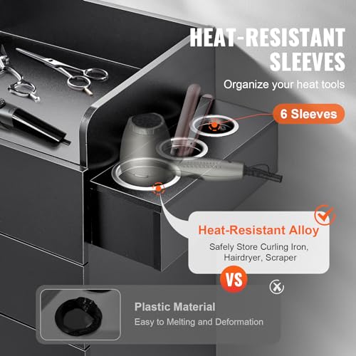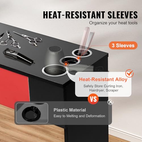 VEVOR Salon Storage Cabinet, Wall Mounted Barber Salon Station for Hair Styling, with 3 Sleeves, A Mirror, Double-Door Cabinet, and A Drawer, Black
