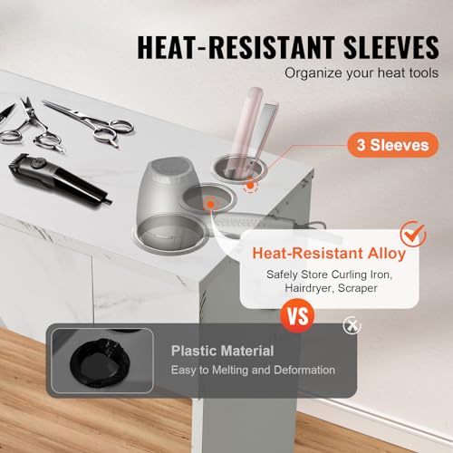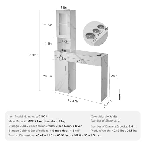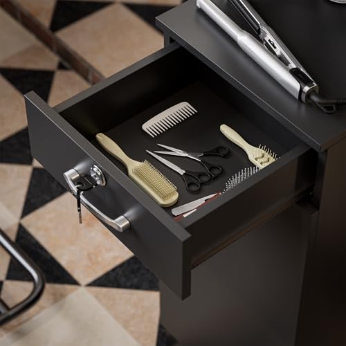 VEVOR Salon Station, Wall Mount Barber Salon Station for Hair Stylist, Beauty Spa Furniture Set, 1 Storage Cabinet, 3 Cubbies and 2 Drawers(One Lockable), Black