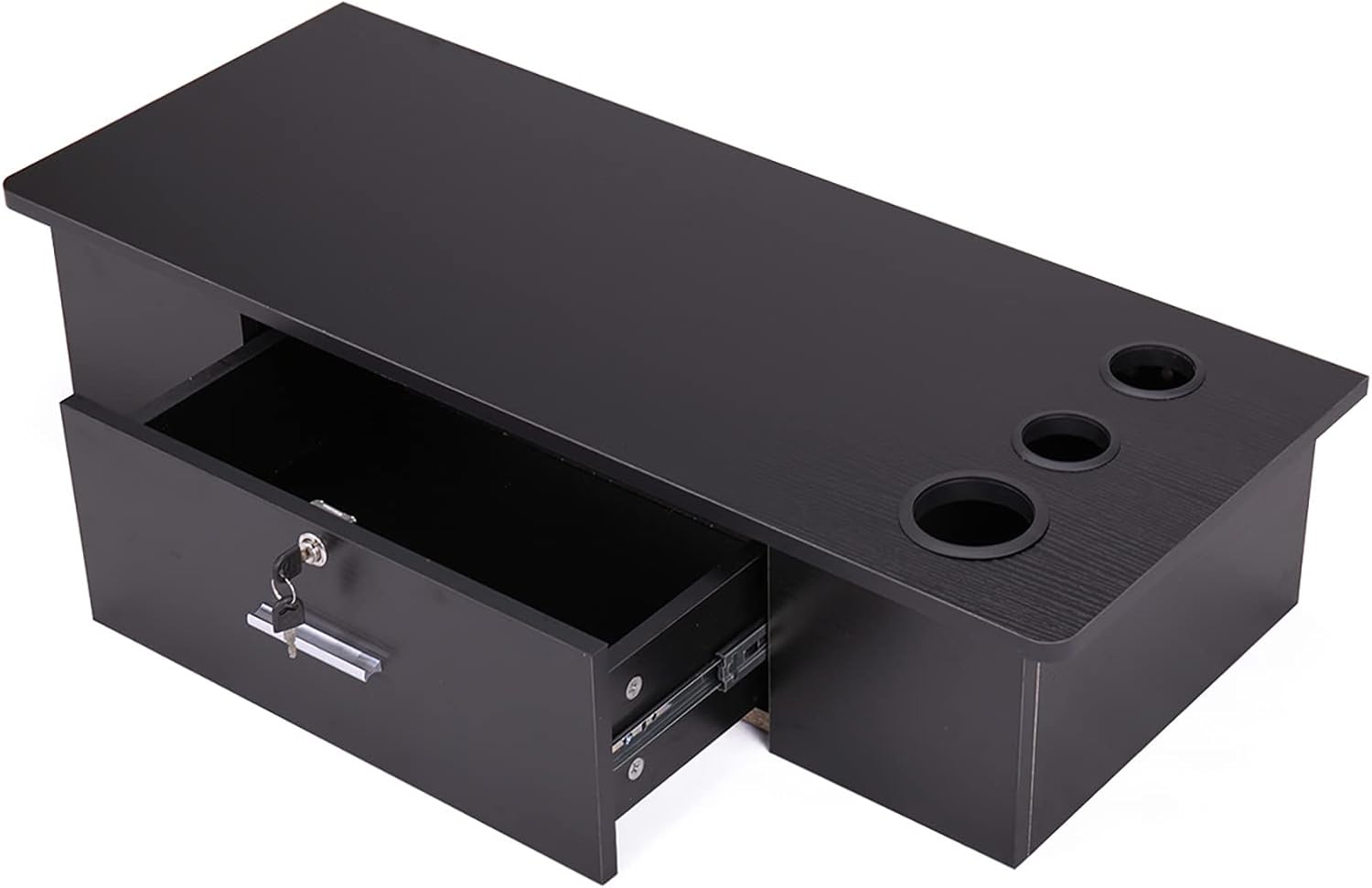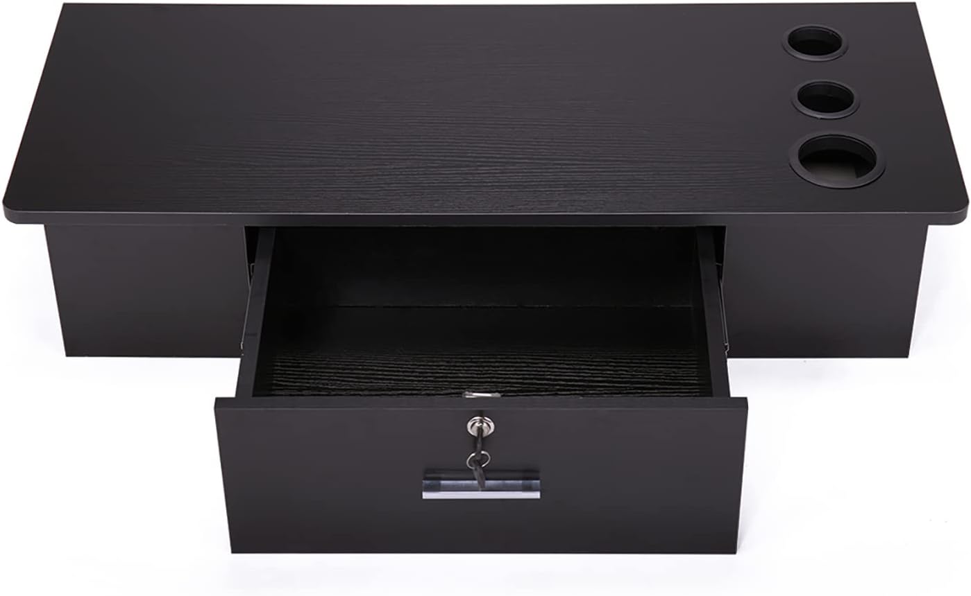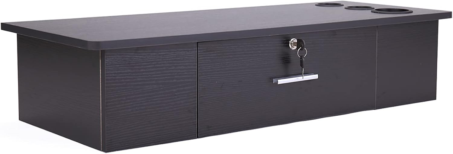 Black Wall Mount Styling Station Classic Locking 2 Drawers Storage Beauty Salon Equipment 3 Hair Dryer Holes Locking Cabinet for Beauty Salon or SPA, Barber Shop, Black