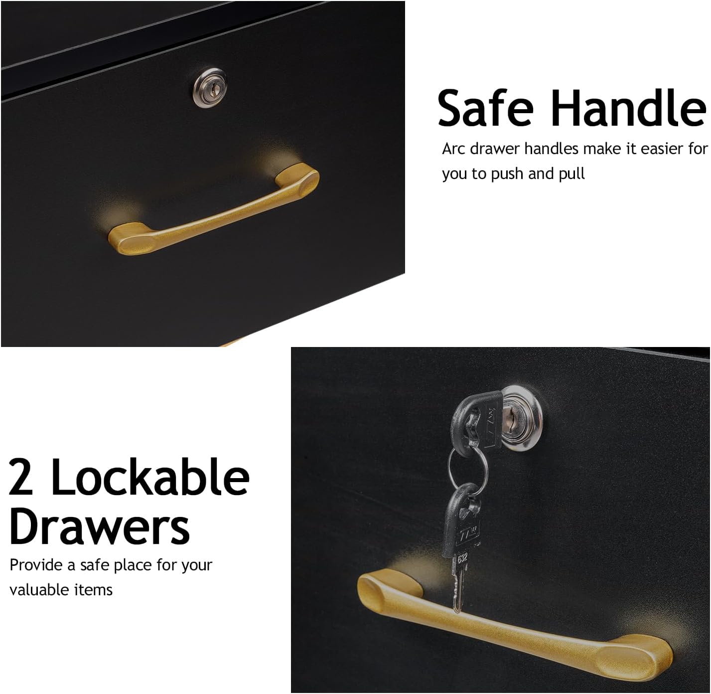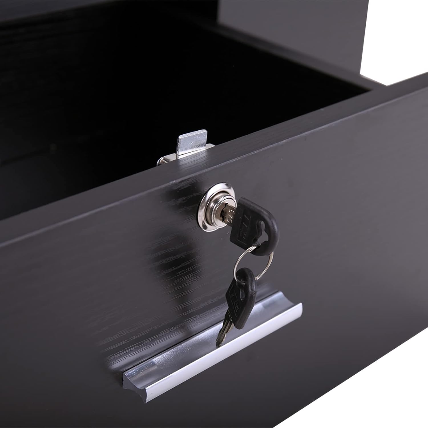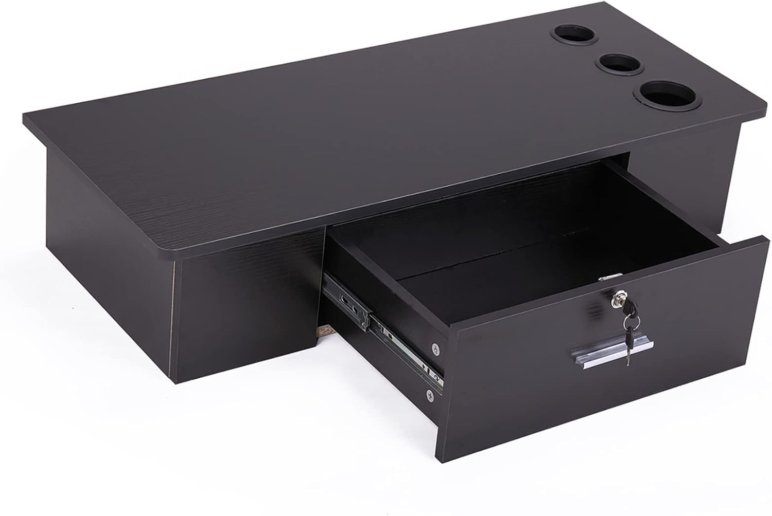 Black Wall Mount Styling Station Classic Locking 2 Drawers Storage Beauty Salon Equipment 3 Hair Dryer Holes Locking Cabinet for Beauty Salon or SPA, Barber Shop, Black