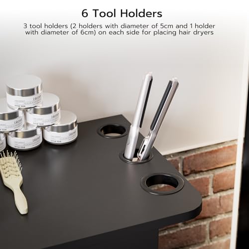 Wall Mount Salon Storage Station Barber Cabinet with Drawer and 2 doors, Hair Stylist Station with 6 Hair Dryer Holders, Beauty Styling Station Organizer Equipment(Black)