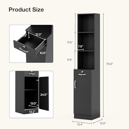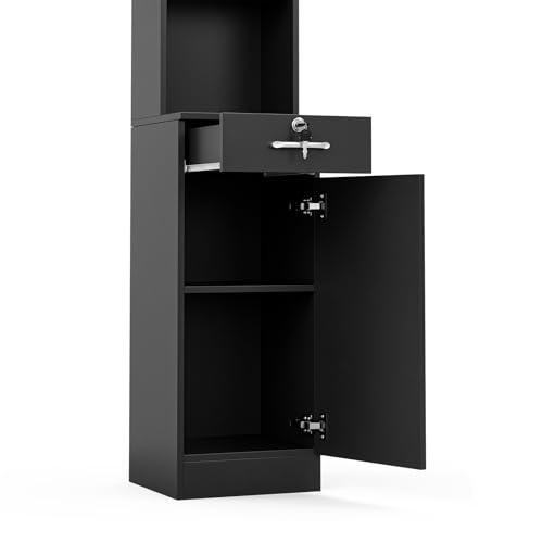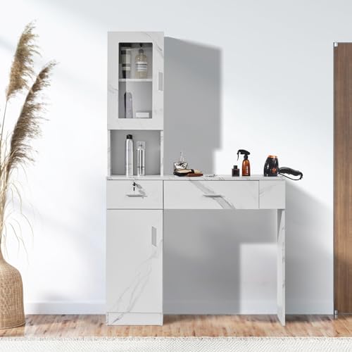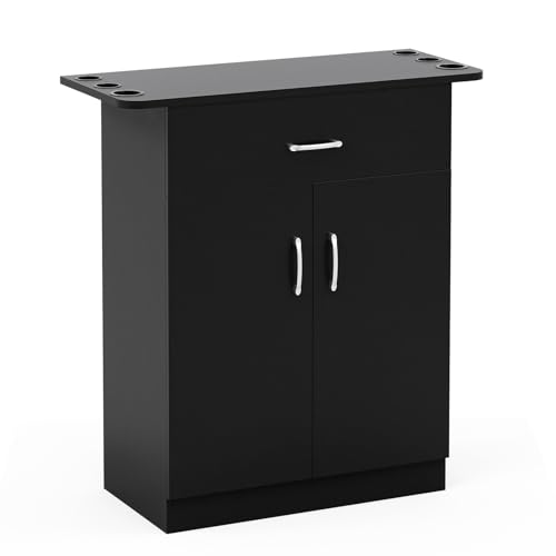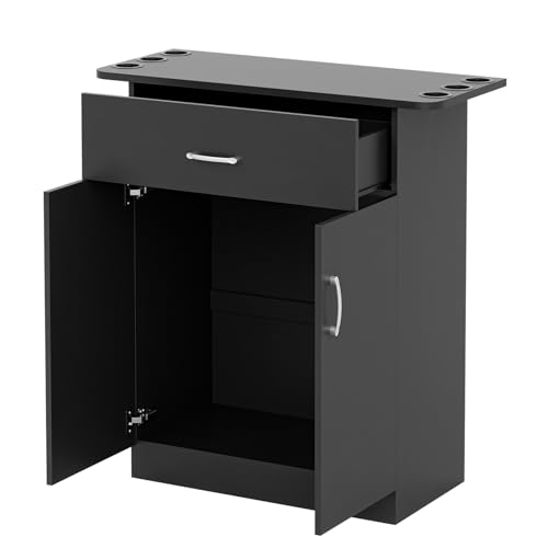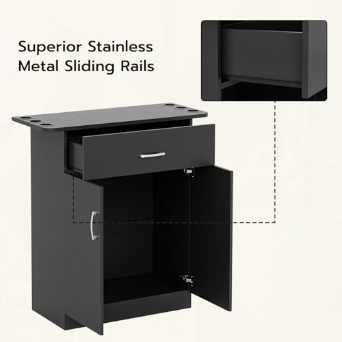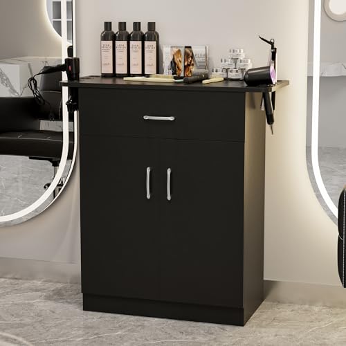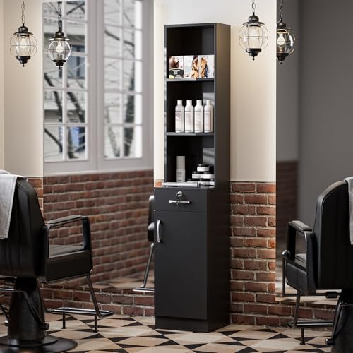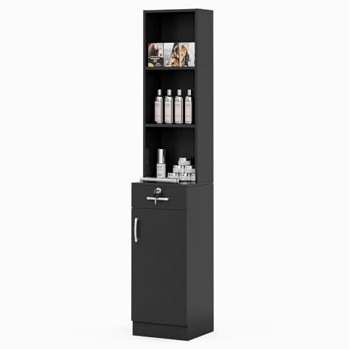 Wall Mount Beauty Salon Storage Station,Barber Shelf Stations Hair Styling Spa Equipment Storage Cabinets with Door, Drawer and Shelves,Black