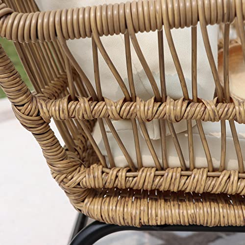 NICESOUL® Closeout 6 Seats Outdoor Chair Set with Round Ice Bucket and Stationary Egg Chair Boho Style Woven Gray PE Wicker Patio Conversation Sofa Lounge Set Clearance Yard Porch Dark Grey