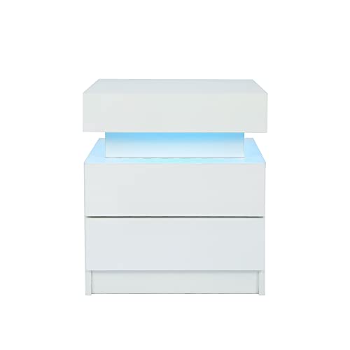 LED Nightstand with 2 Drawers, Bedside Table with Drawers for Bedroom Furniture, Side Bed Table End Table with LED Light for Bedroom Living Room (White)