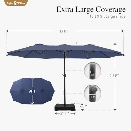 Sophia & William 15 ft Extra Large Patio Umbrella with Base Included, Rectangular Outdoor Umbrella Heavy Duty, Market Umbrella Double-sided Fade Resistant for Pool Garden Backyard, Maillard Brown
