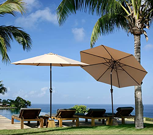 Grand patio 9 FT Enhanced Aluminum Patio Umbrella, UV Protected outdoor Umbrella with Auto Crank and Push Button Tilt, Coloured Stripes