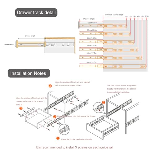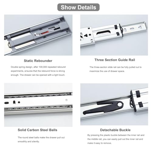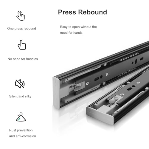 Drawer slides, Soft Close heavy duty Soft Close Drawer Slidess, 1 Pair Push to Open Drawer Slides 10 12 14 16 18 20 Inch 100 Lb Load Capacity Side Mount Handleless Ball Bea(50cm/20Inch)