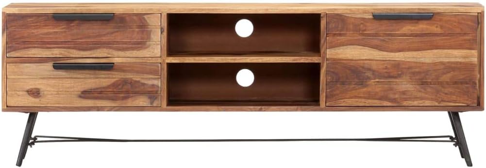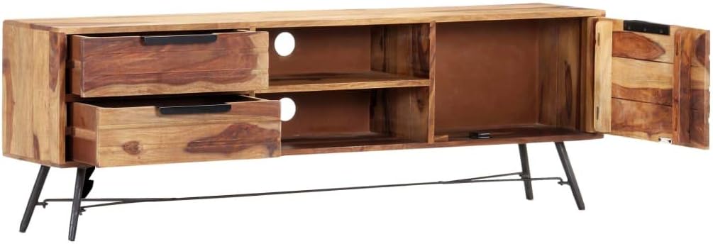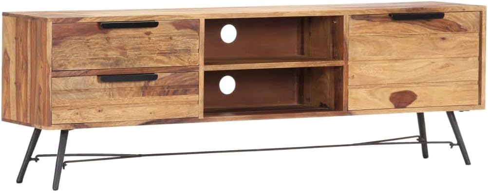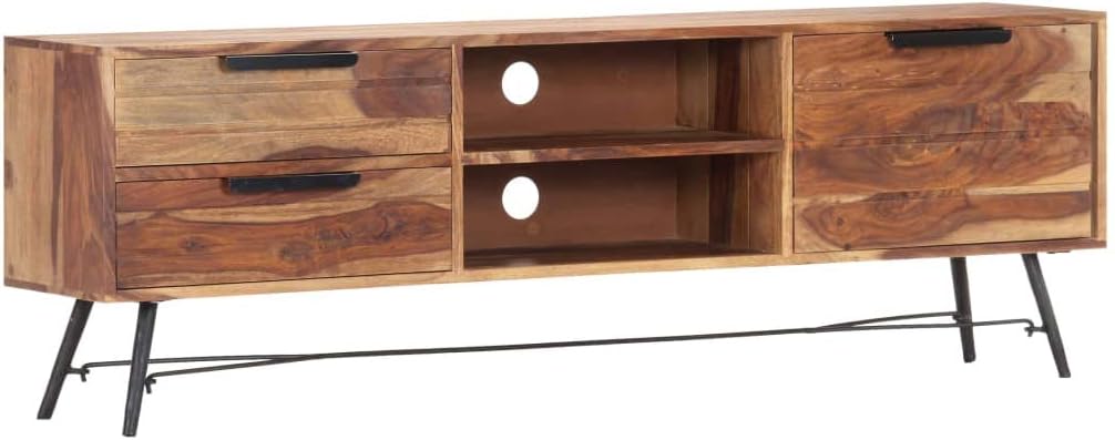 TV Stand, Center Console Entertainment Center Gaming Tv Stand Tv Unit Suitable for Office Small Spaces Living Room Bedroom 55.1"x11"x18.5" Solid Wood Sheesham