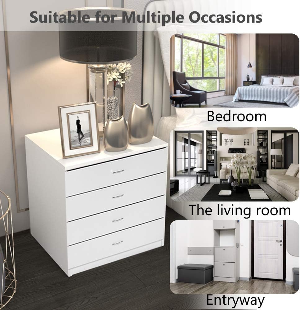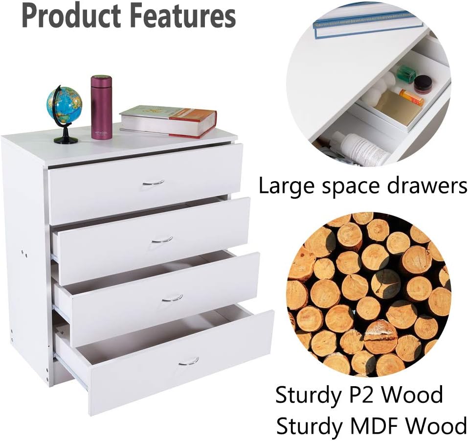 Henf 4 Drawers Dresser, White Wooden Drawers Chest Storage Cabinet for Closet, Storage Unit Drawers for Playroom,Bedroom,Living Room,Kid’s Room