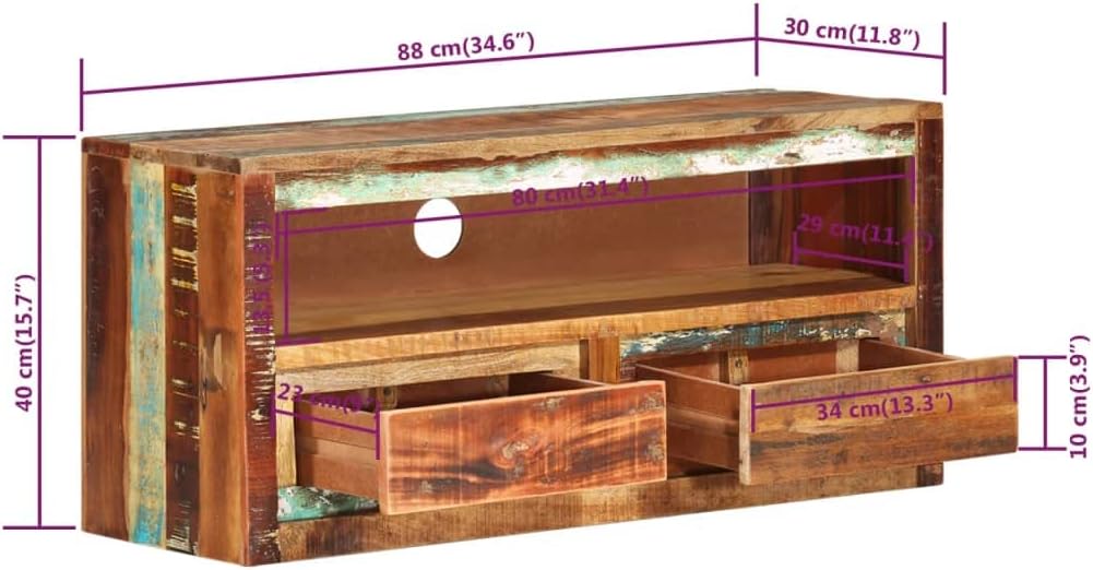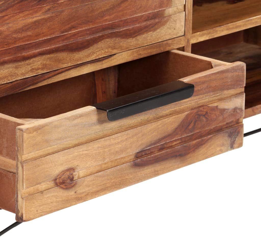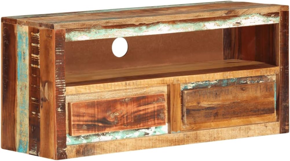 vidaXL Solid Reclaimed Wood TV Stand - Versatile Entertainment Unit with Unique Design, Shelf, and Two Drawers, Sheesham Wood Finish