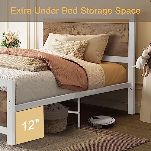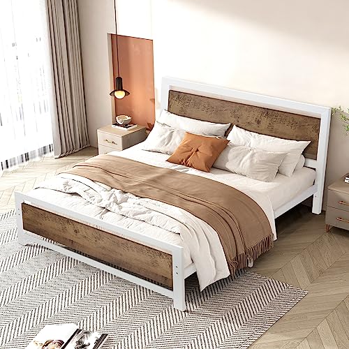Full Size Metal Platform Bed Frame with Black Wooden Headboard and Footboard, Heavy Duty Metal Slats Support, No Box Spring Needed, Mattress Foundation, Noise-Free, Easy Assembly, All Black