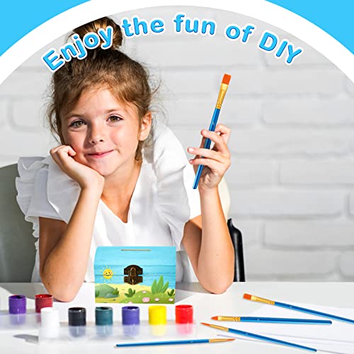 Unfinished Wood Treasure Chest Box Savings 4.72 x 3 x 3.23 Inch Treasure Chest Box Unpainted DIY with Paint Brushes and Craft Gems Self Adhesive Rhinestones Stickers (24 Pcs)