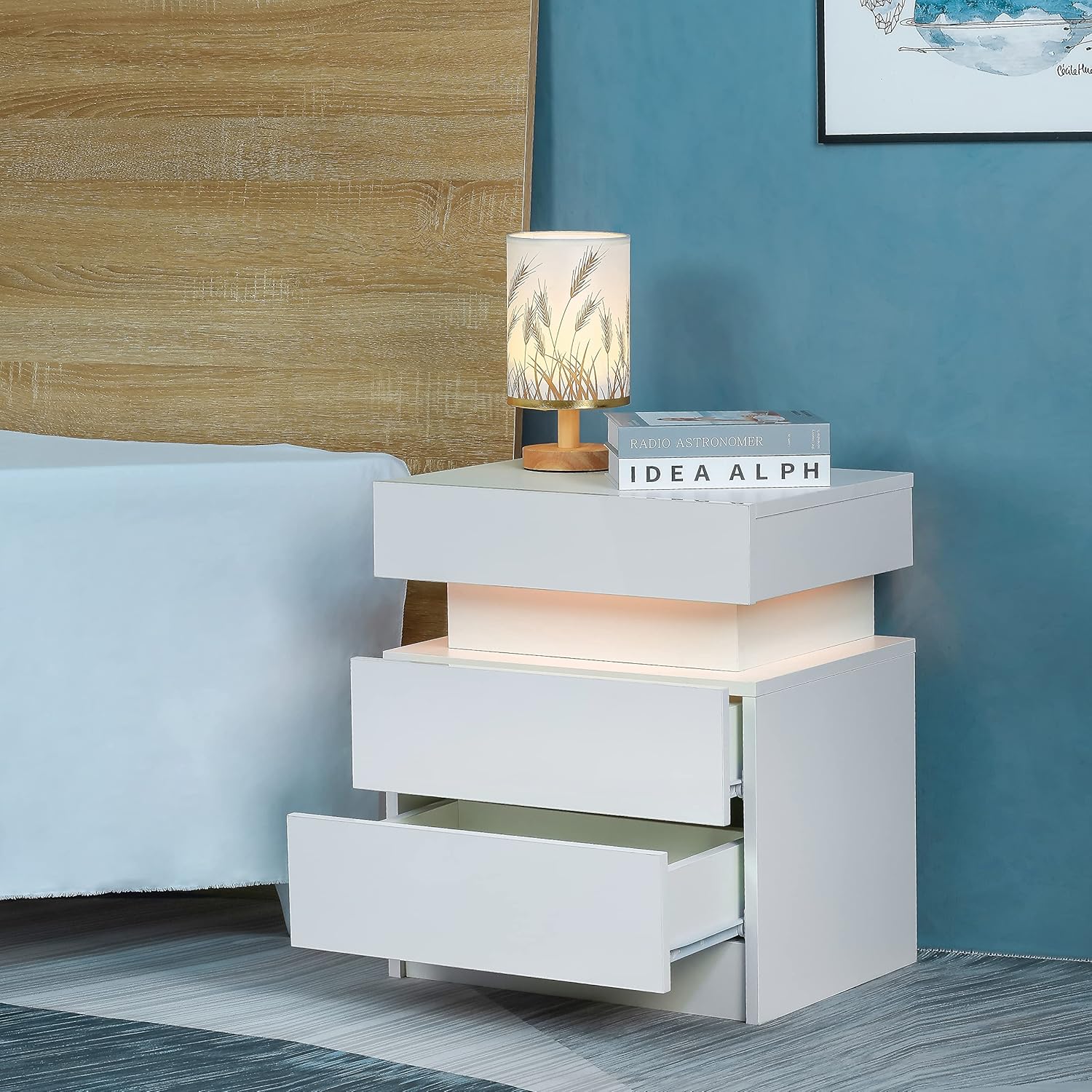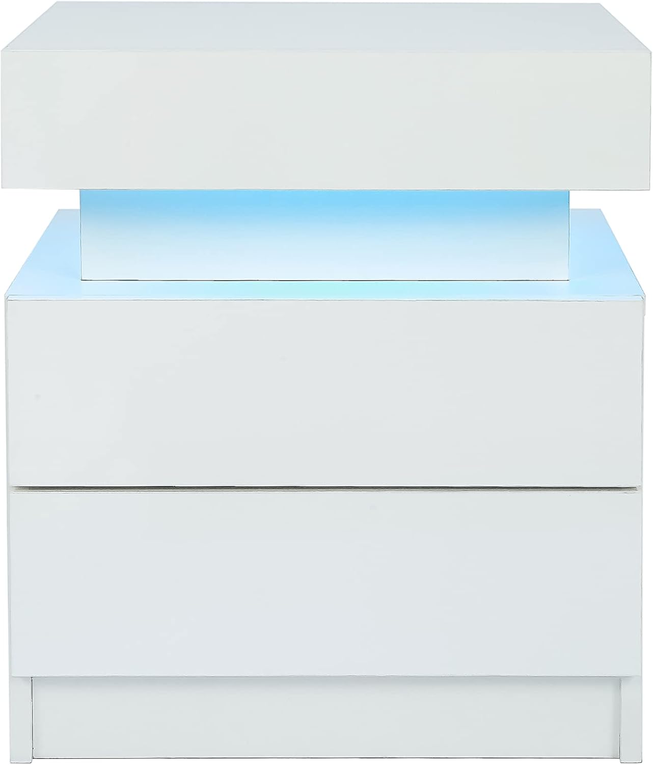 LED Nightstand Modern White Nightstand with Led Lights Wood Led Bedside Table Nightstand with 2 High Gloss Drawers for Bedroom