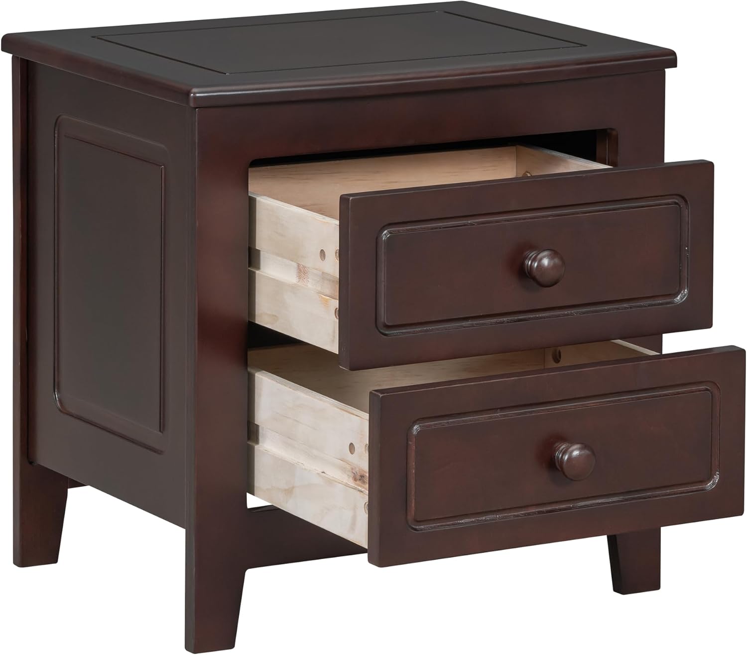 2-Drawer Nightstand for Bedroom, Mid Century Retro Bedside Table with Classic Design,Dark Walnut
