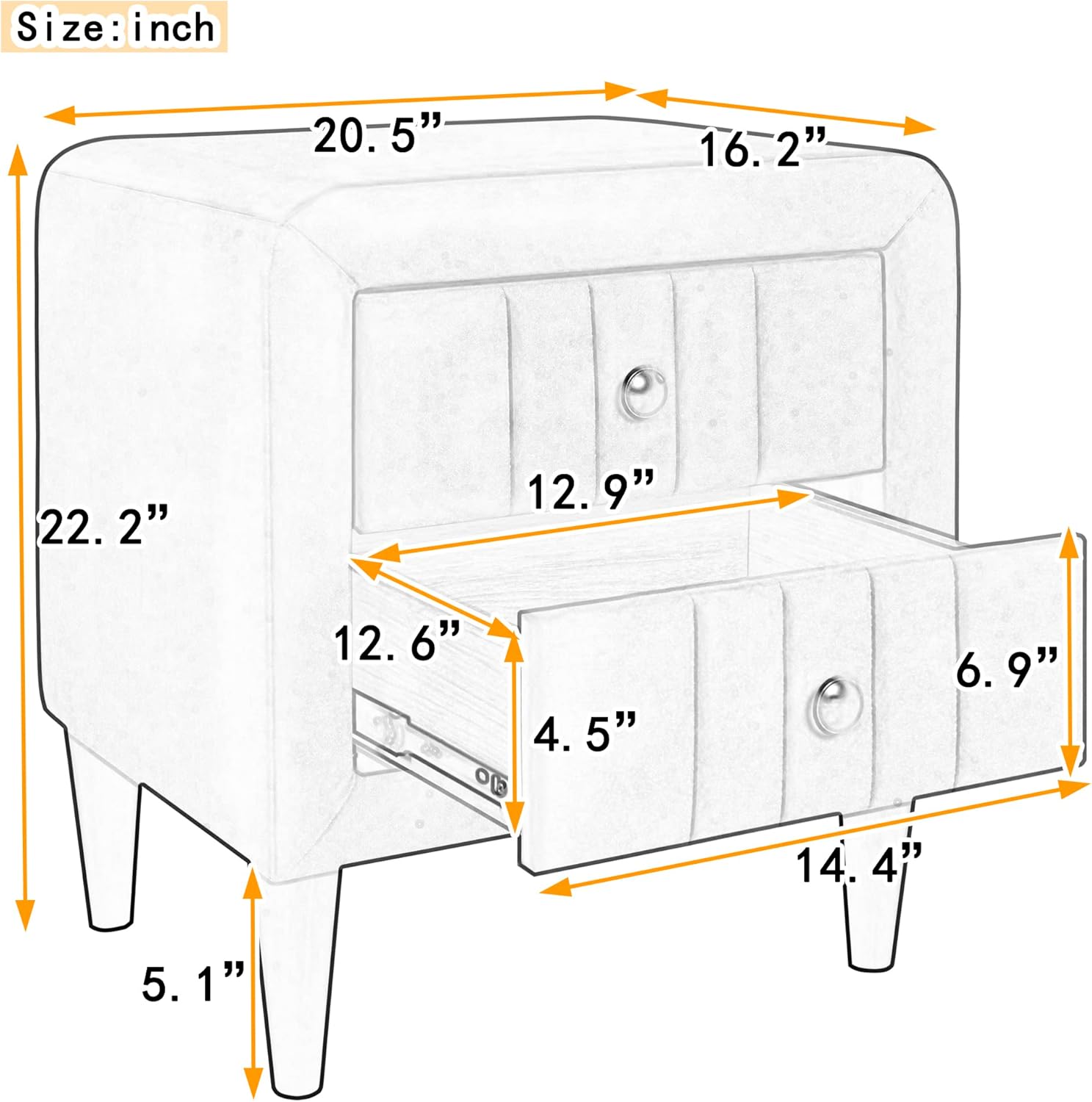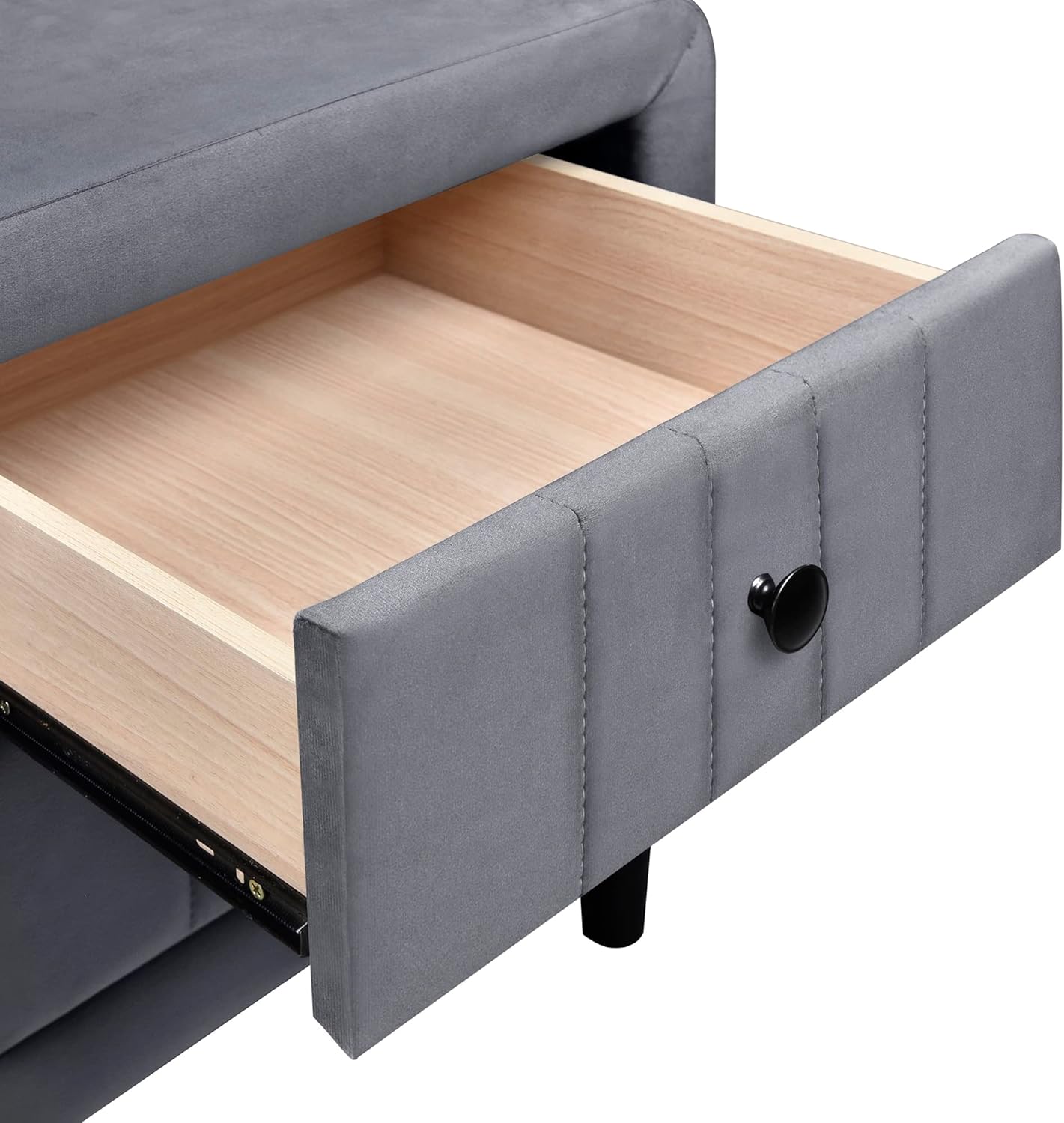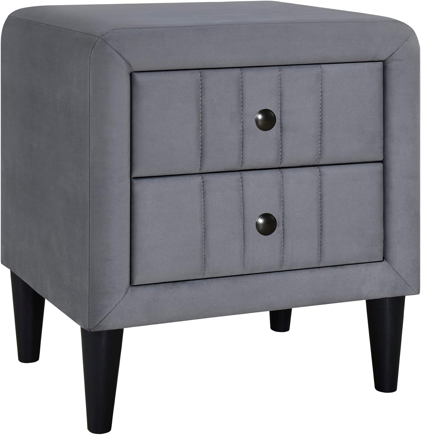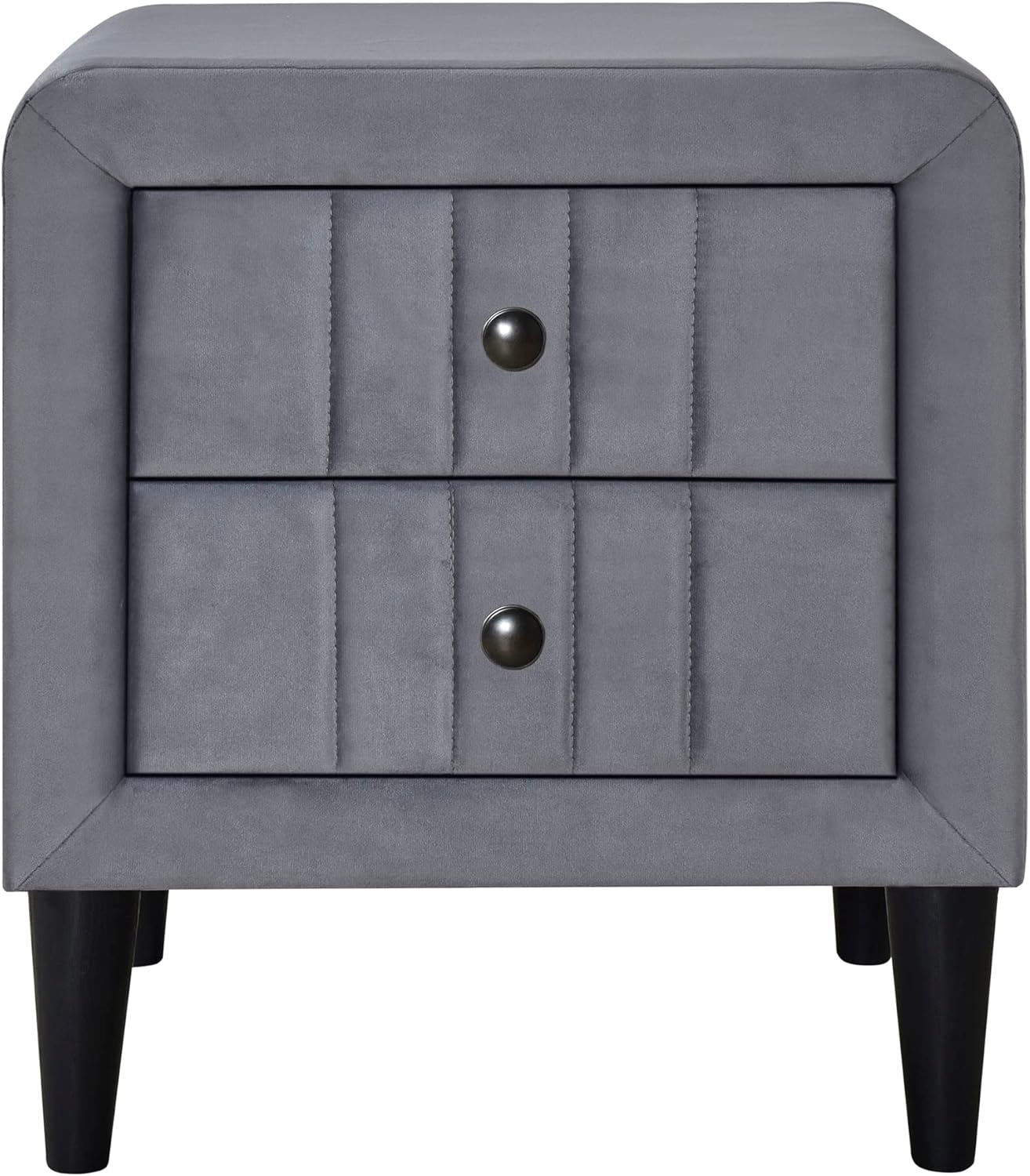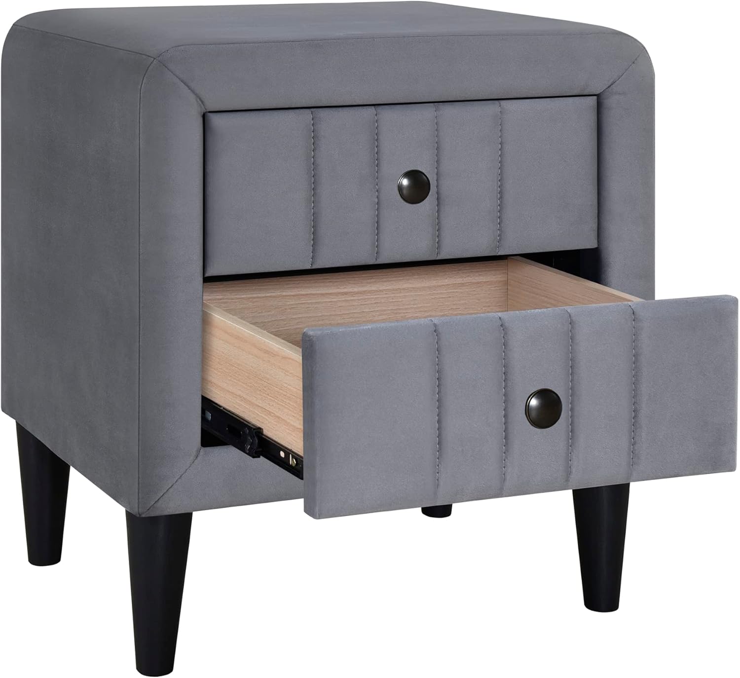 Upholstered Wooden Nightstand with 2 Drawers,Fully Assembled Except Legs and Handles,Velvet Bedside Table-Gray