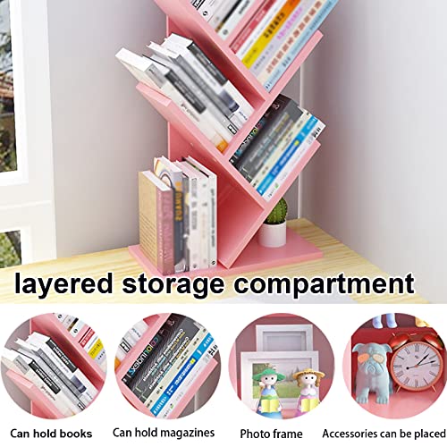 Tree Shelf, Standregal in Baumform, Raumteiler Aktenregal Aufbewahrungregal Holz, Platzsparend, Für Bücher, Wohnzimmer, Arbeitszimmer, Kinderzimmer, Büro, Schlafzimmer (Color : Pink)