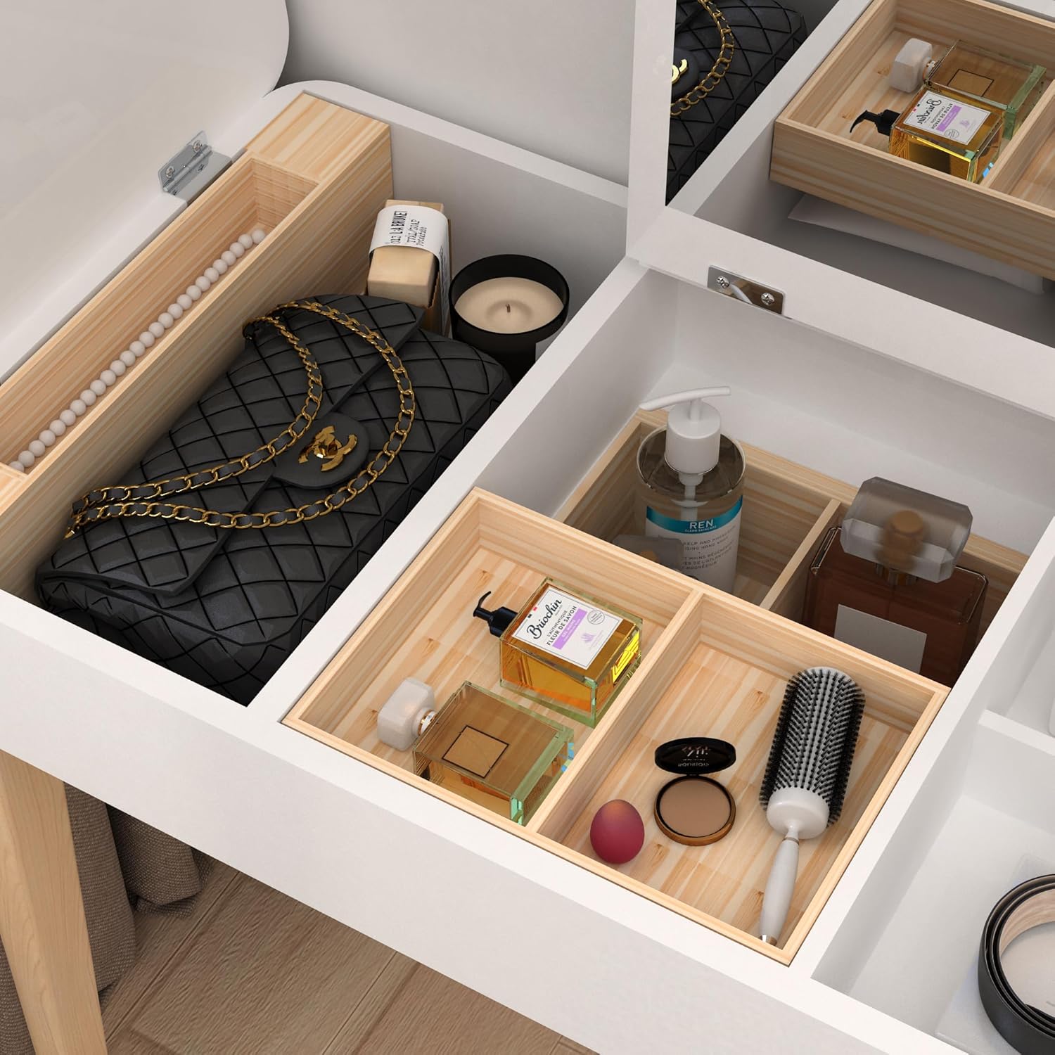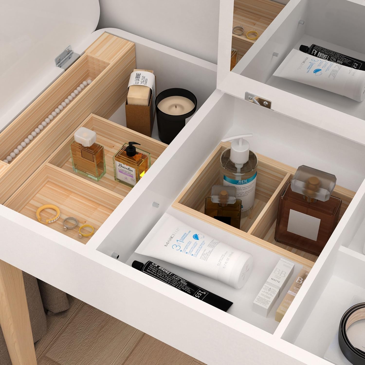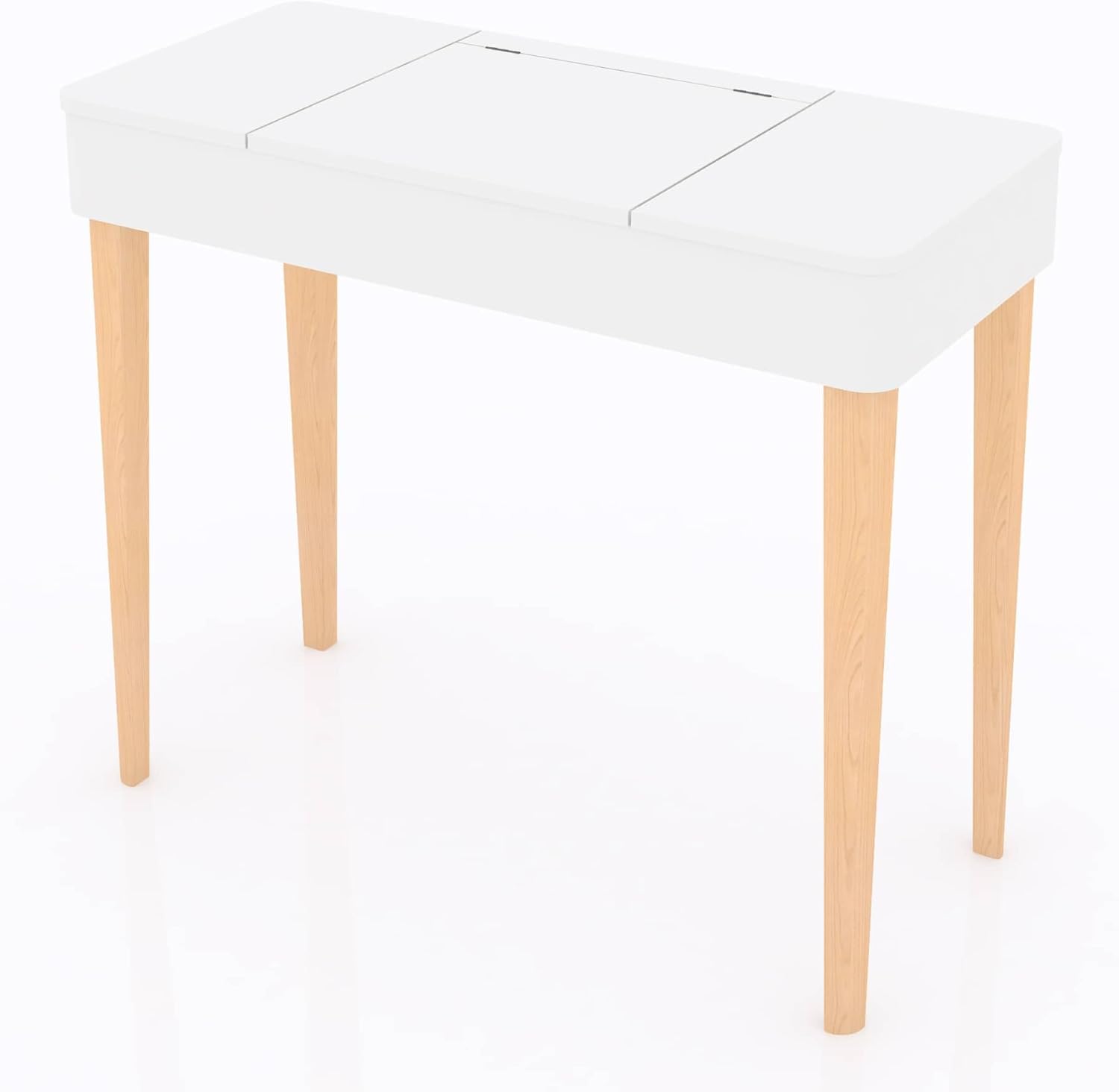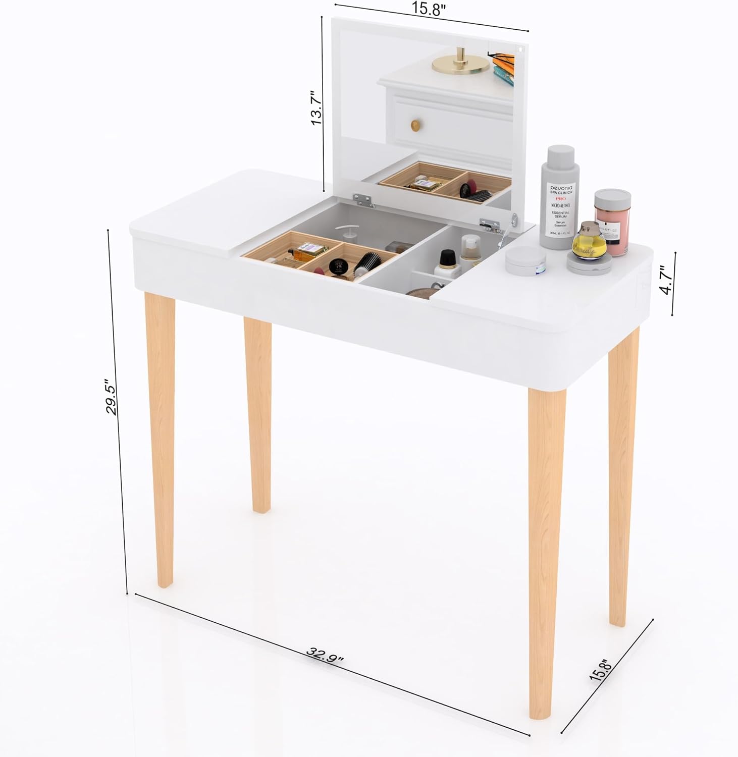 Makeup Dressing Table With Reversible High-Definition Dressing Mirror And Solid Wood Legs, Can Be Used As Buros Para Recamara, Makeup Mirror For Desk Suitable For Small Spaces (Stool Not Included)