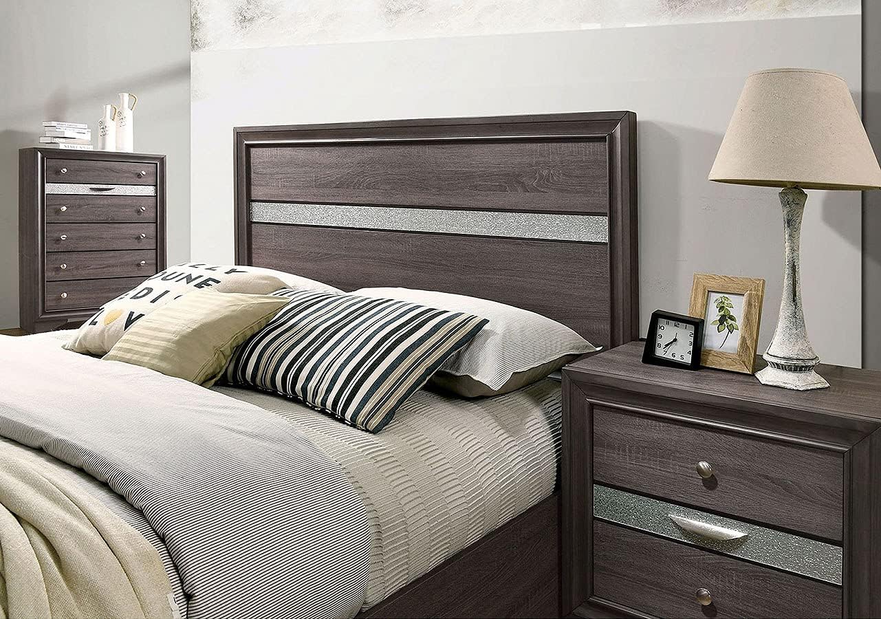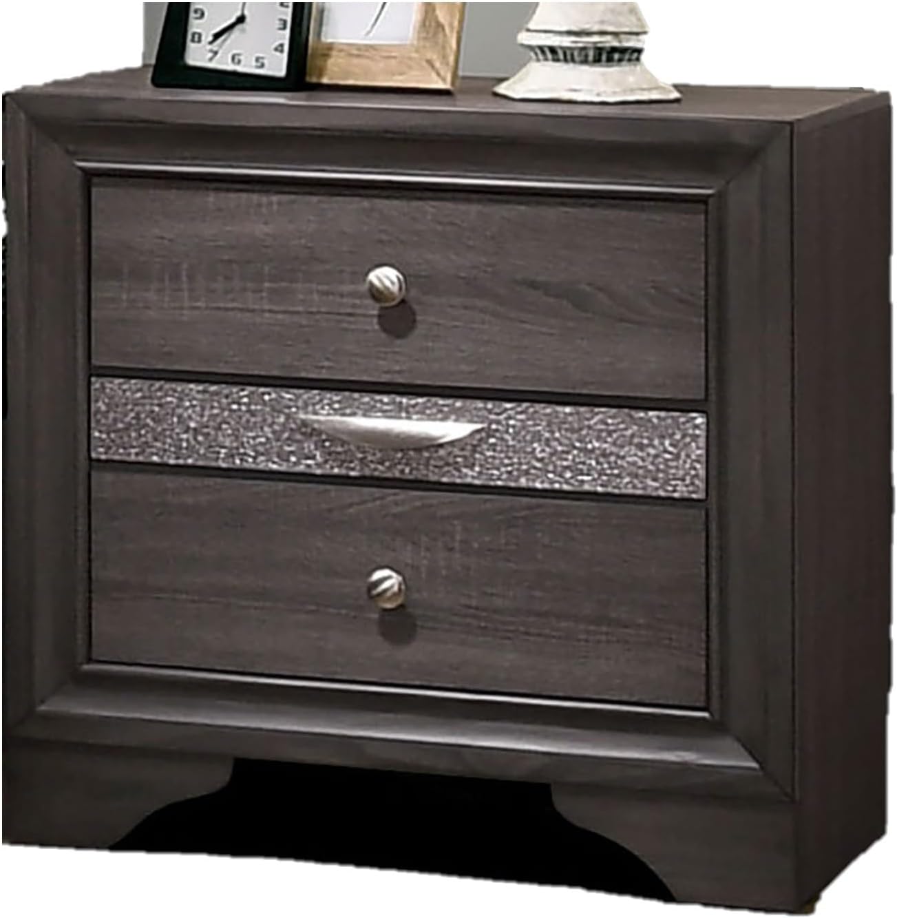 Contemporary 1pc Nightstand Gray Finish Silver Accents Hidden Jewelry Drawer Nickel Round Knob Bedside Table Bedroom Furniture