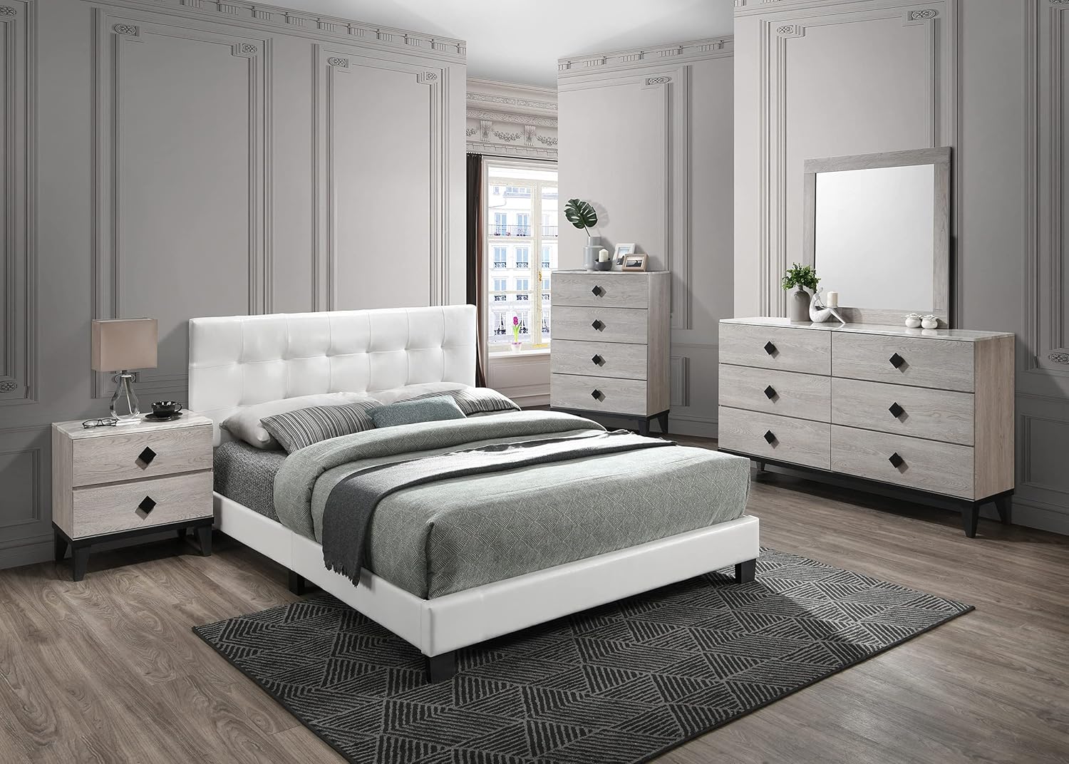 Bedroom Furniture Contemporary Look Cream Color Nightstand Drawers Bed Side Table Plywood