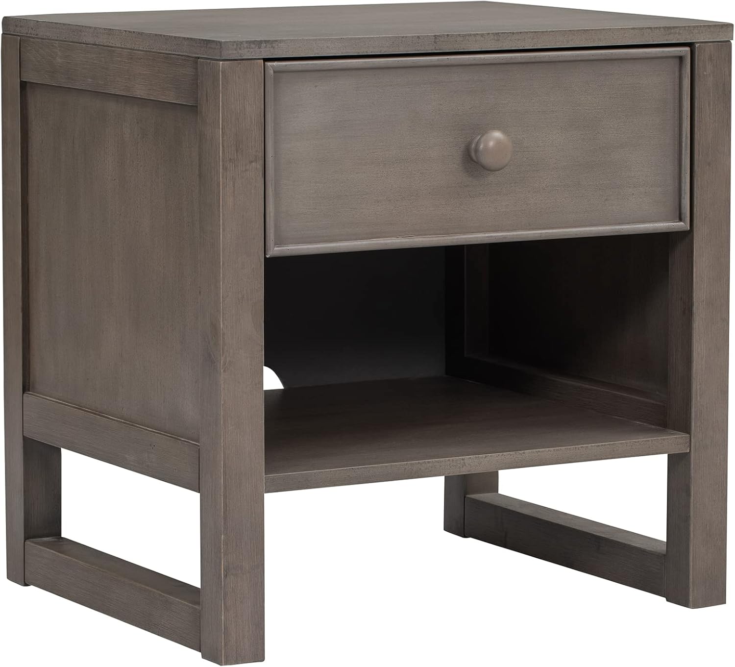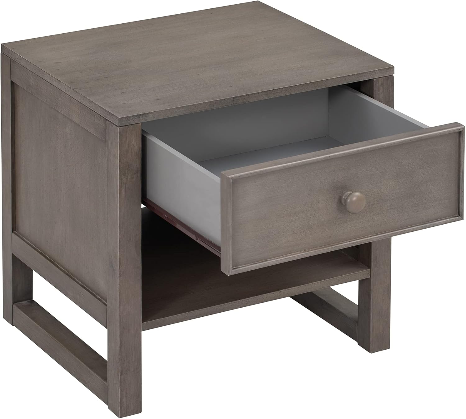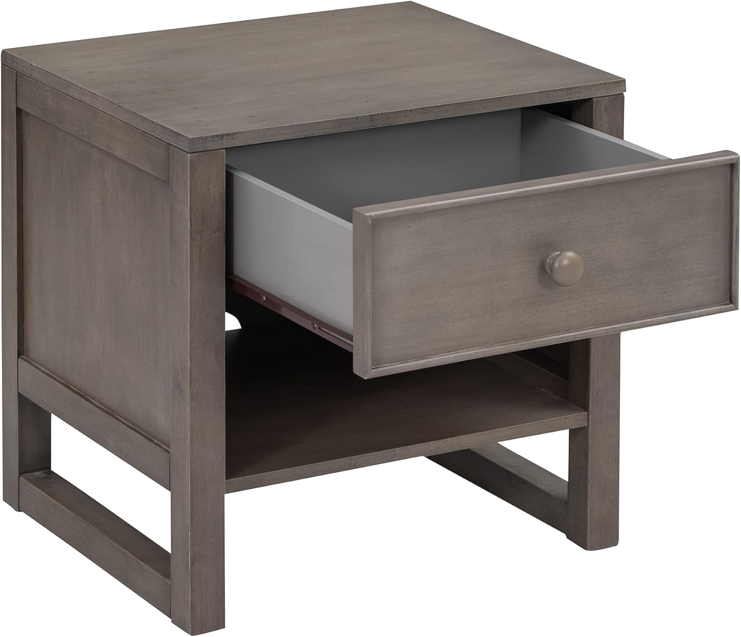 Wooden Nightstand with a Drawer and an Open Storage,End Table for Bedroom,Anitque Gray